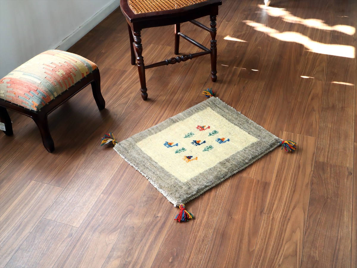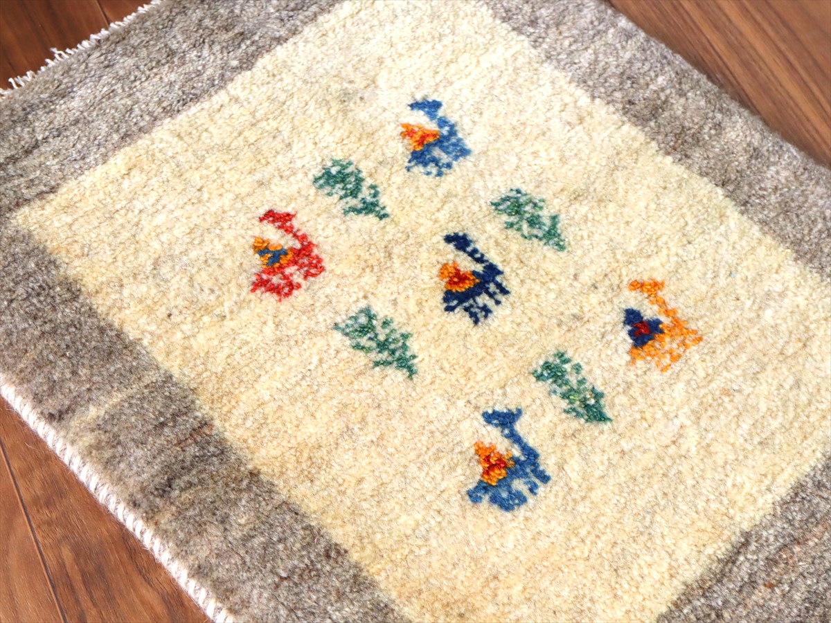 ギャッベ ミニギャベ イラン手織り 58×46cm ナチュラルアイボリー ラクダと生命の樹