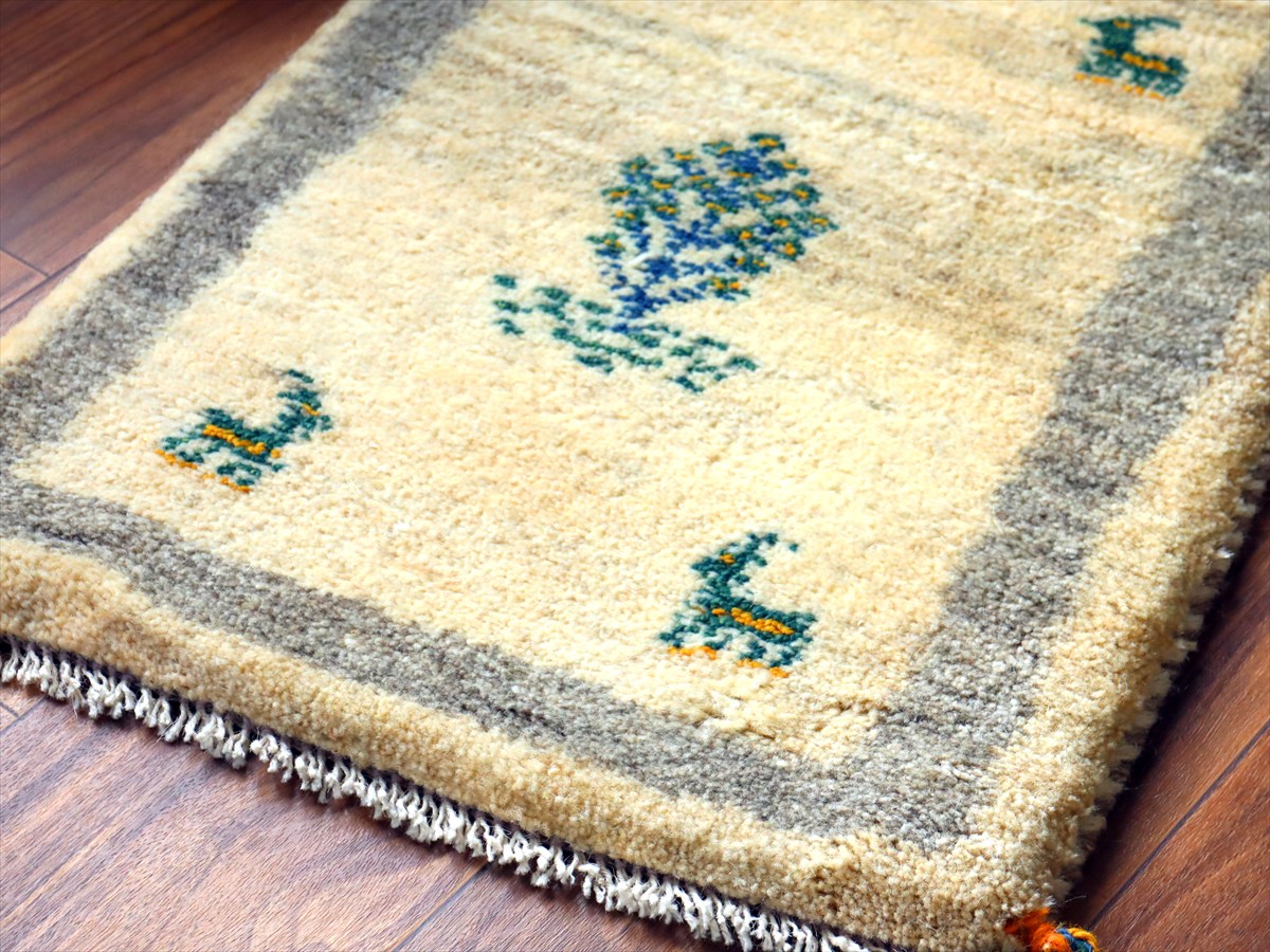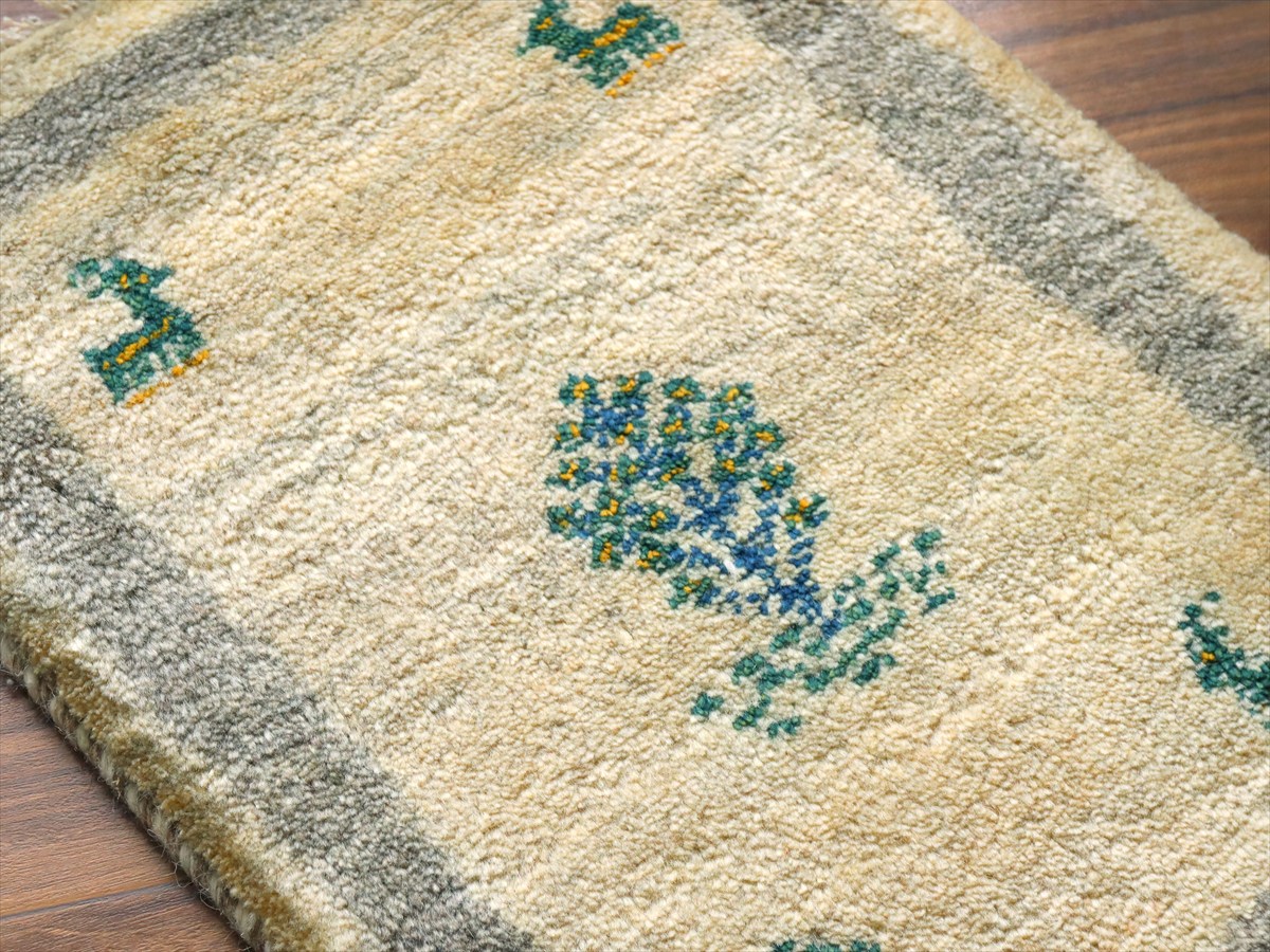 ギャッベ ミニギャベ イラン手織り 56×42cm ナチュラルアイボリー 動物と生命の樹