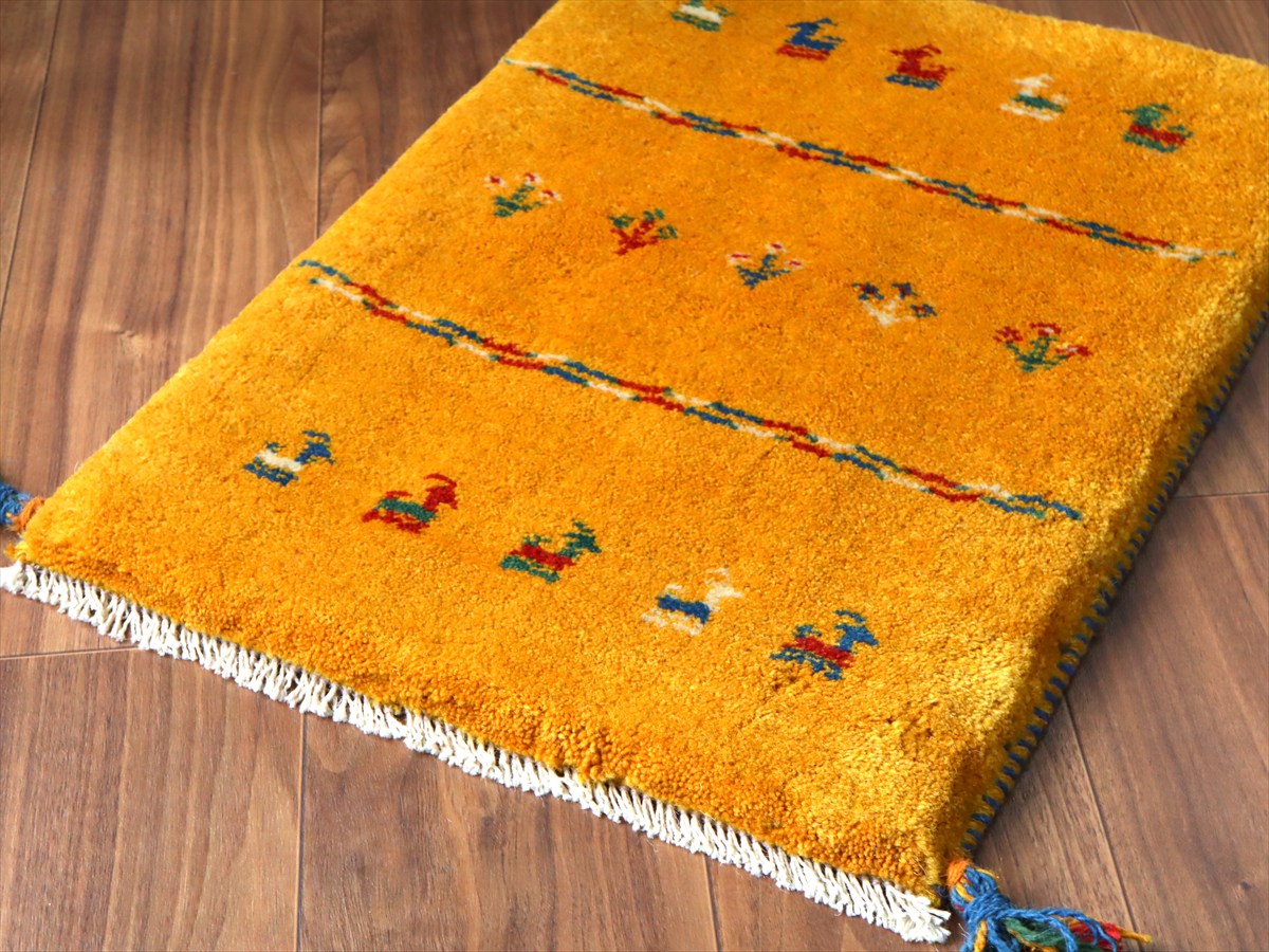 ギャッベ ミニギャベ イラン手織り 59×43cm イエローオレンジ 動物と生命の樹