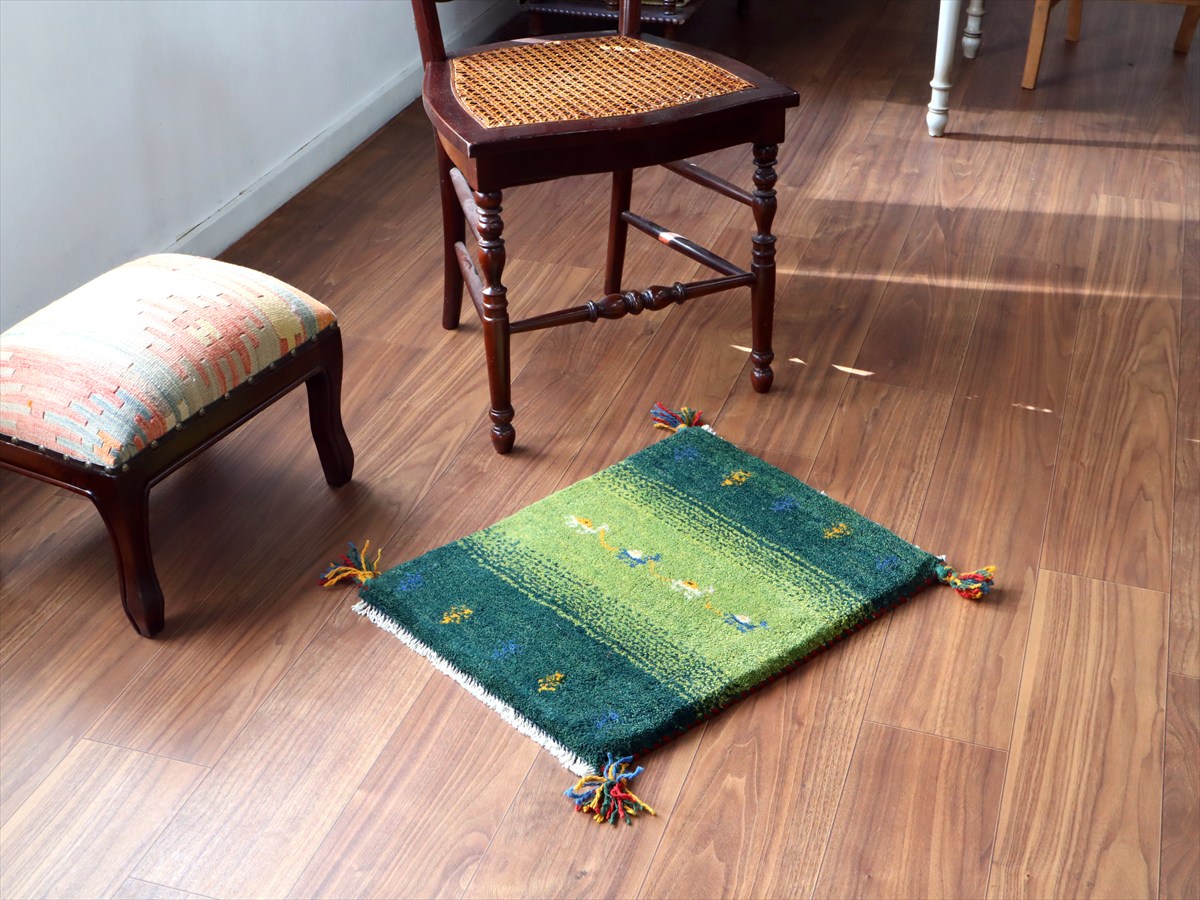 Key:Gabbeh, Tribal rug, Shiraz, Fars, Iran, Persia, Wool, ギャッベ, ギャベ, グリーン 緑 天然染料 草木染 ラグ, 絨毯, イラン, シラーズ, ペルシャ, バザールギャッベ, ポンポン, 手織り, 一点もの, 玄関マット, ふかふか, ガラタバザール