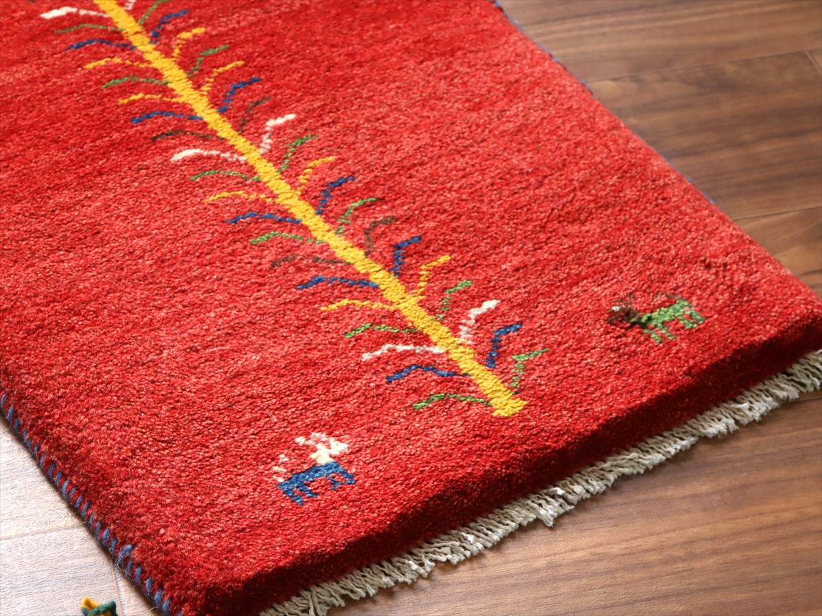 ギャッベ ミニギャベ イラン手織り 60×42cm レッド 連なる生命の樹と動物