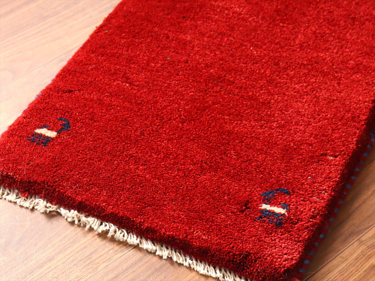 ギャッベ ミニギャベ イラン手織り 58×39cm レッド 四隅に動物