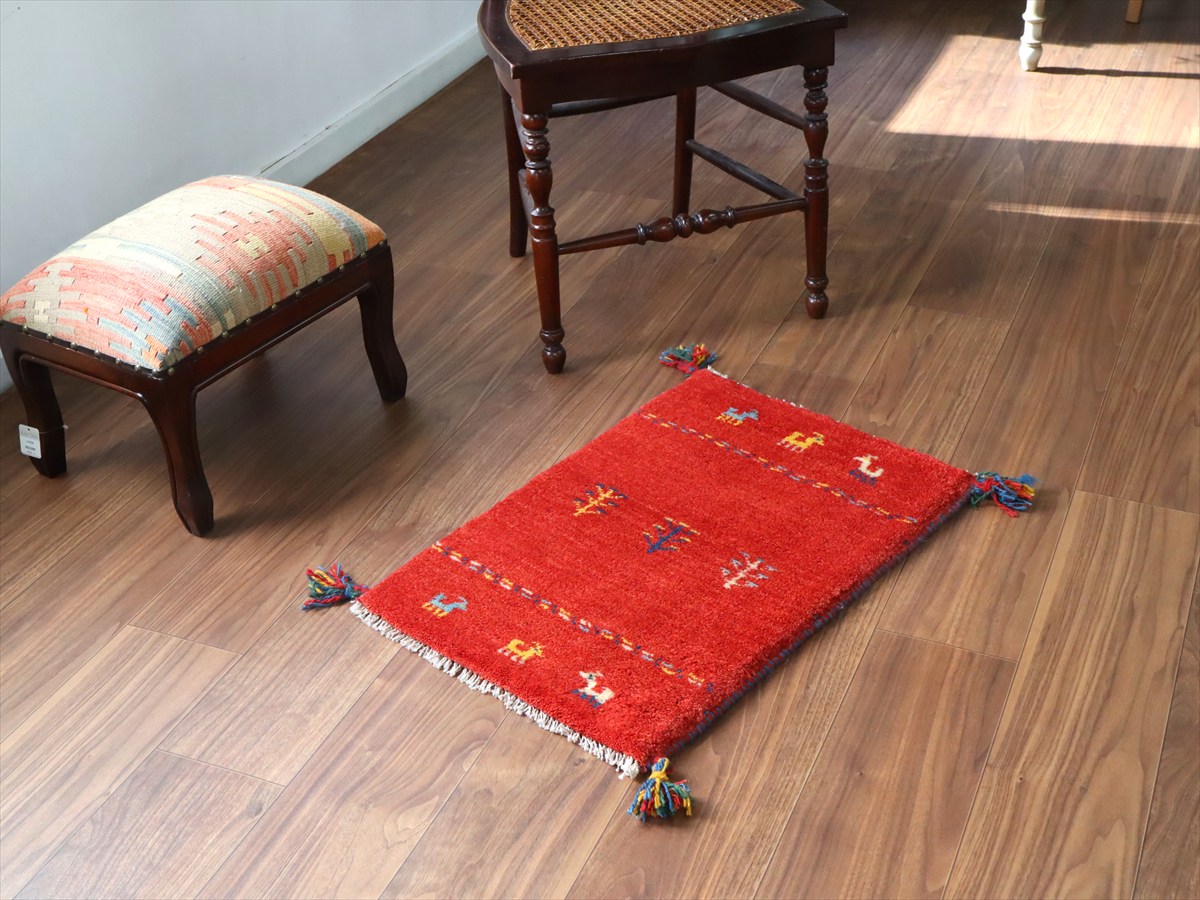 Key:Gabbeh, Persian, Iran, イラン直輸入, カシュカイ, ギャッベ, ギャベ, レッド, 赤, 玄関マット, 手織り, ウール100%, 一点もの 現品販売 部族絨毯 トライバルラグ Shiraz, Area Rug, Carpet, Handmade, Hand knotted, ガラタバザール, 東京、中野区