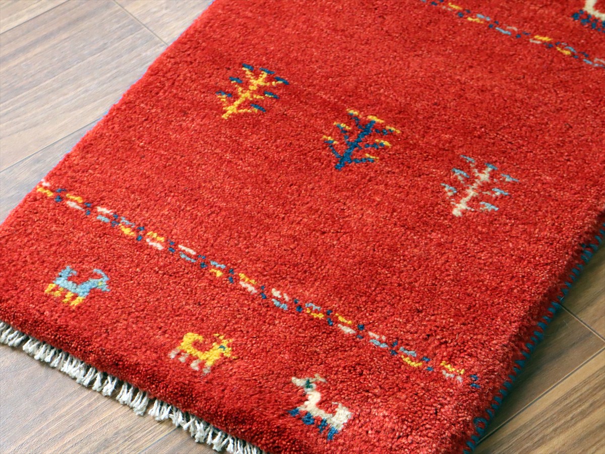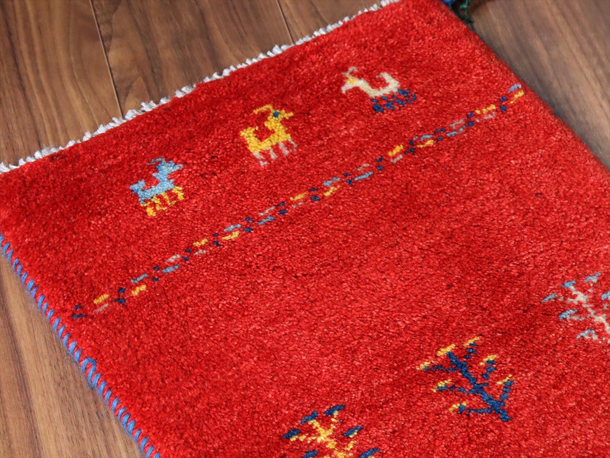 ギャッベ ミニギャベ イラン手織り 63×43cm レッド 生命の樹と動物