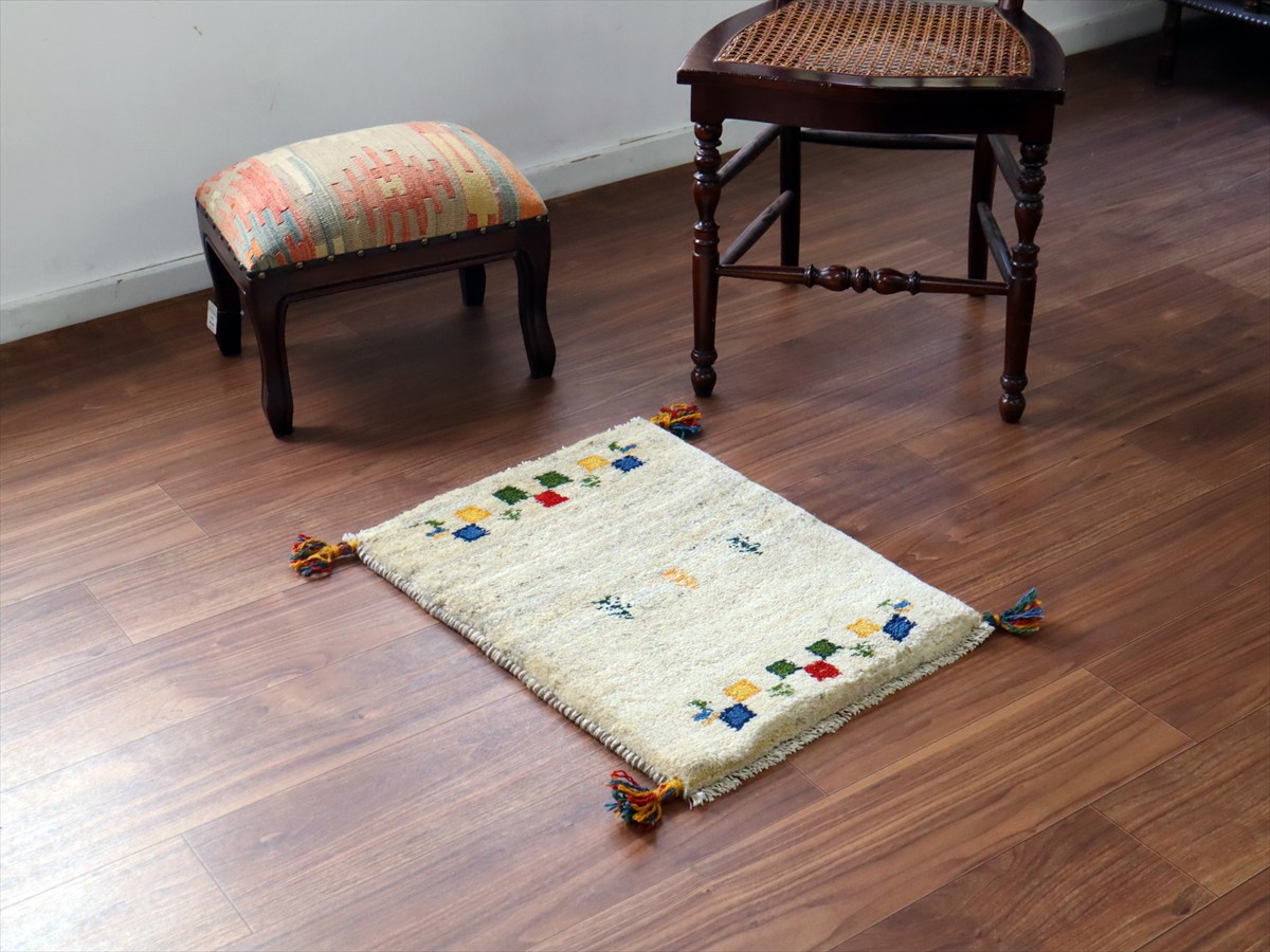- ギャッベ ミニギャベ イラン手織り 57×43cm ナチュラルアイボリー 生命の樹と動物