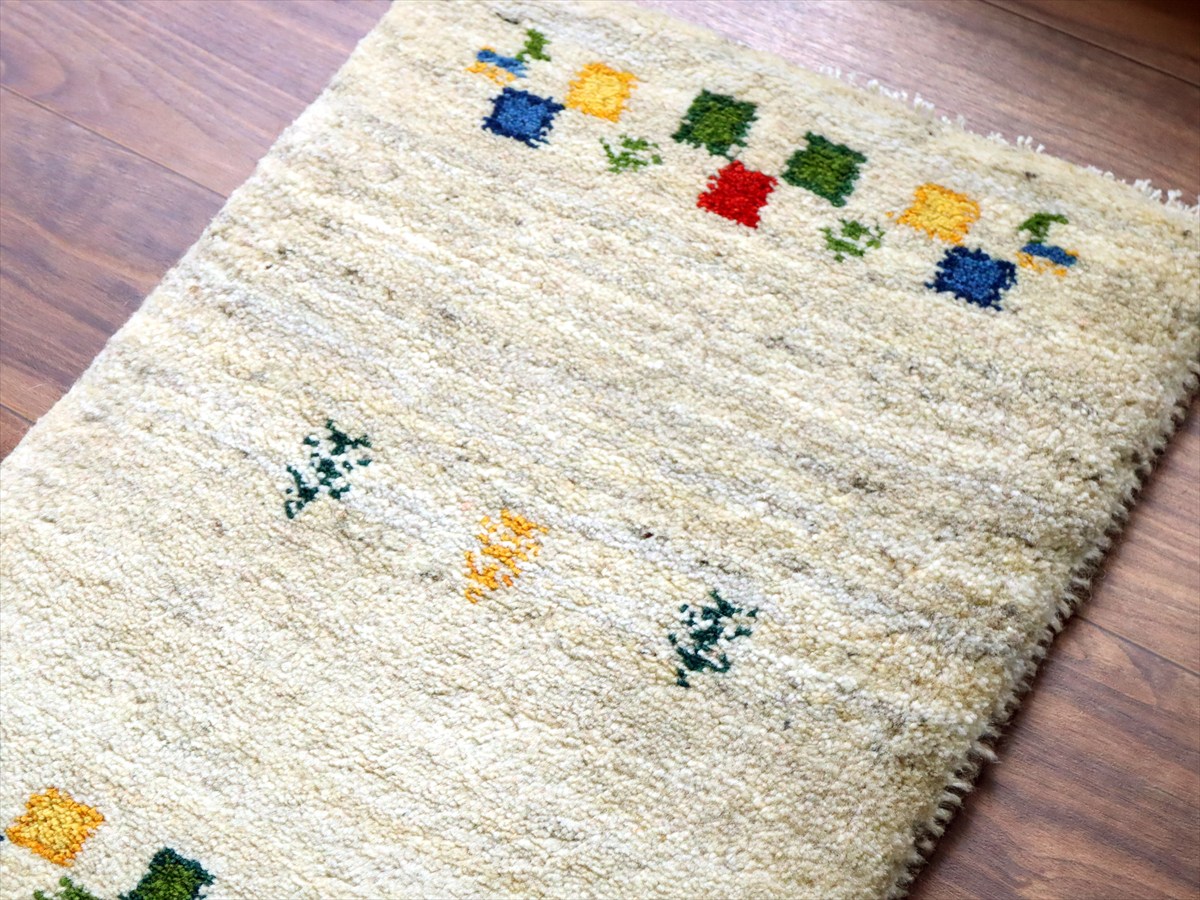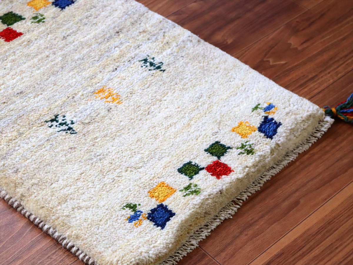 Key:ラグ ギャッベ ギャベ ウール製,イラン 手織り, じゅうたん 絨毯, トライバルラグ 部族絨毯 遊牧民 ノマド カシュカイ族 玄関マット, 一点もの 現品販売 白 ベージュ 羊毛 アイボリー gabbeh, Persian carpet, Tribal rug 東京中野区,ガラタバザール