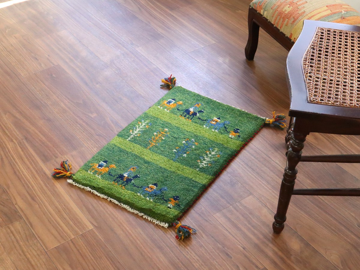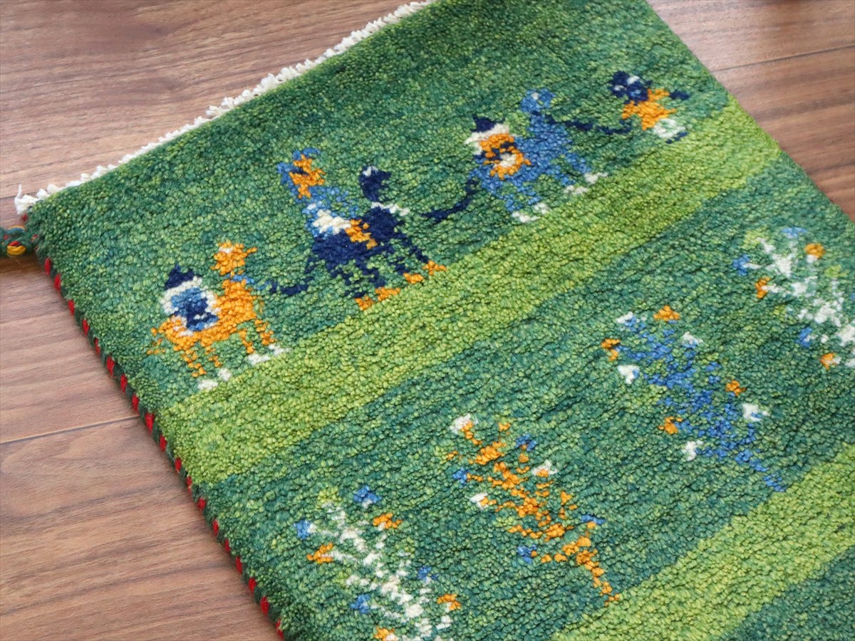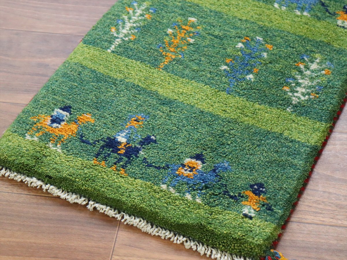 Key:Gabbeh, Tribal rug, Shiraz, Fars, Iran, Persia, Wool, ギャッベ, ギャベ, グリーン 緑 天然染料 草木染 ラグ, 絨毯, イラン, シラーズ, ペルシャ, バザールギャッベ, ポンポン, 手織り, 一点もの, 玄関マット, ふかふか, ガラタバザール