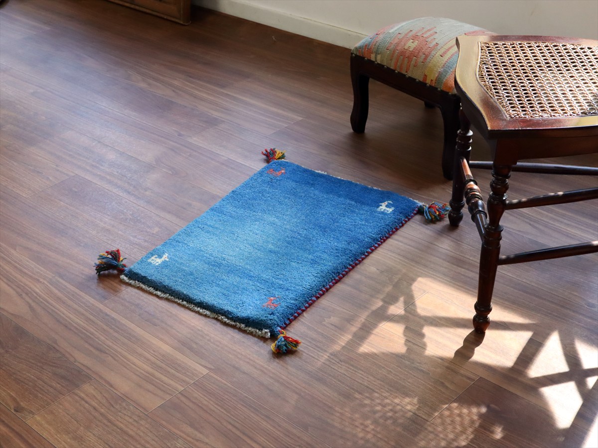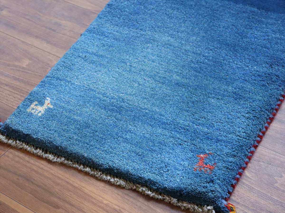 ギャッベ ミニギャベ イラン手織り 57×41cm ブルー 四隅に動物
