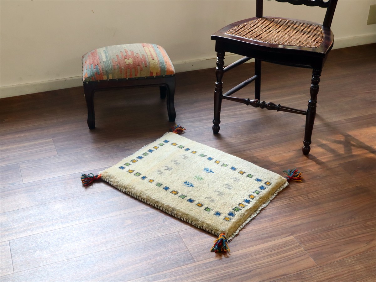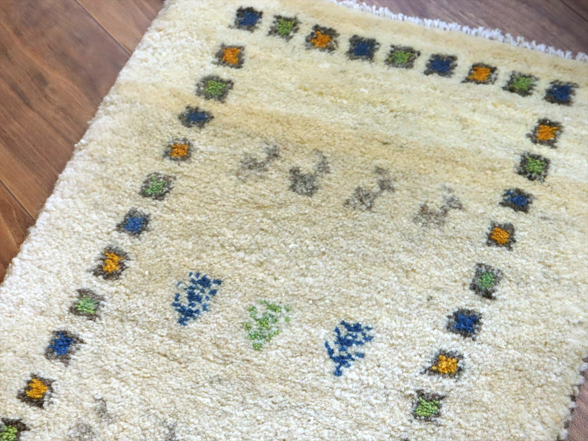 ギャッベ ミニギャベ イラン手織り 57×43cm ナチュラルアイボリー 動物と生命の樹