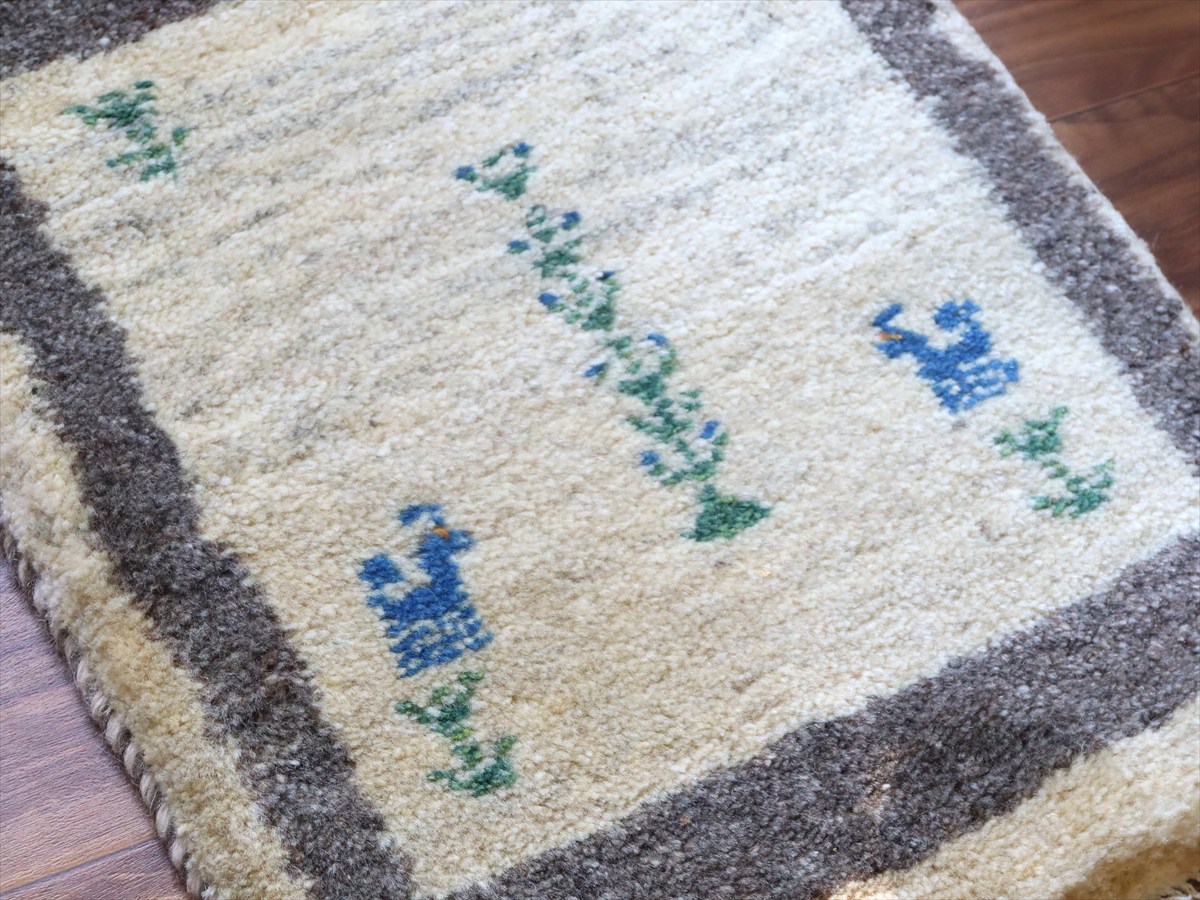 ギャッベ ミニギャベ イラン手織り 55×40cm ナチュラルアイボリー 生命の樹と動物