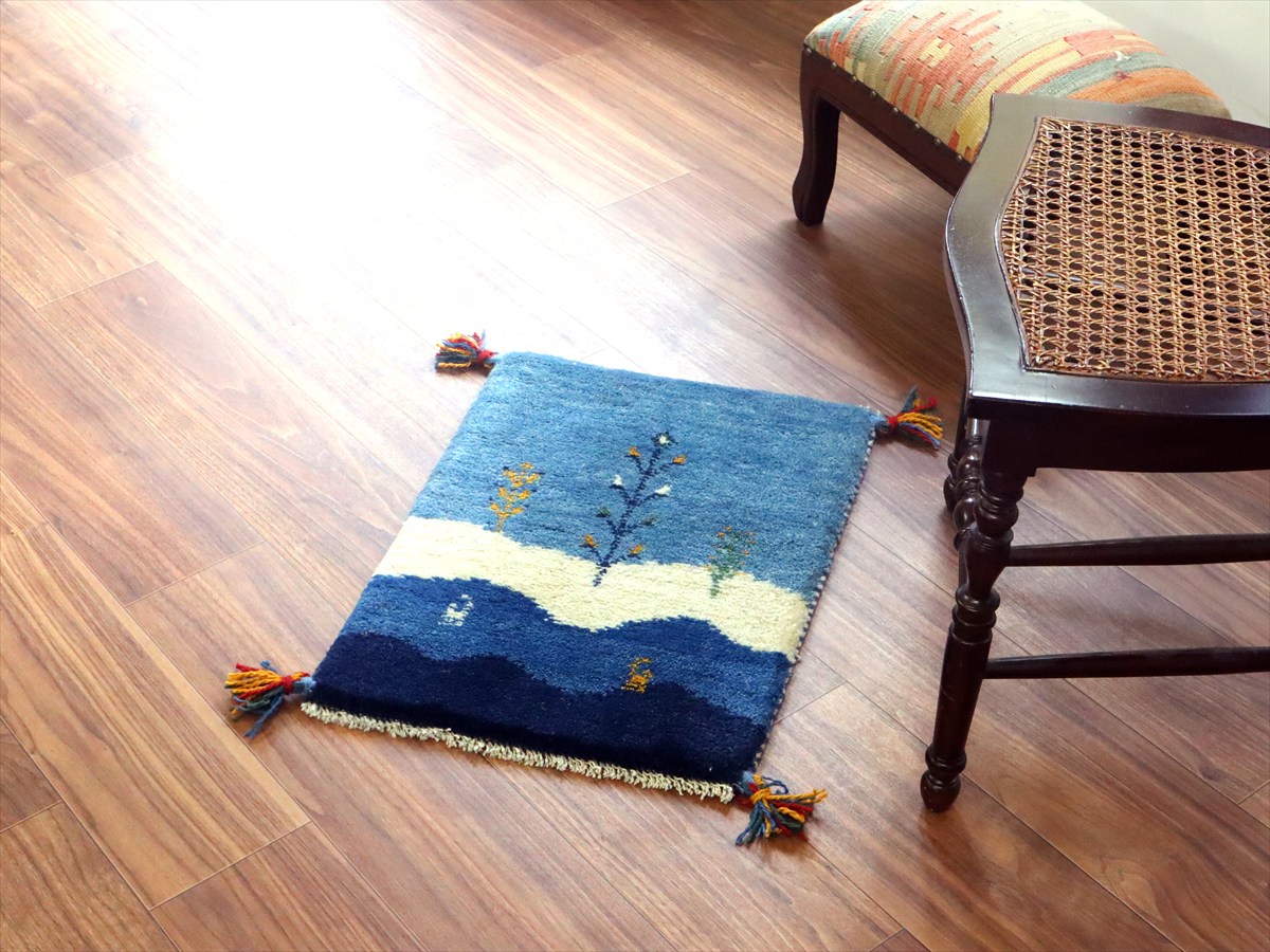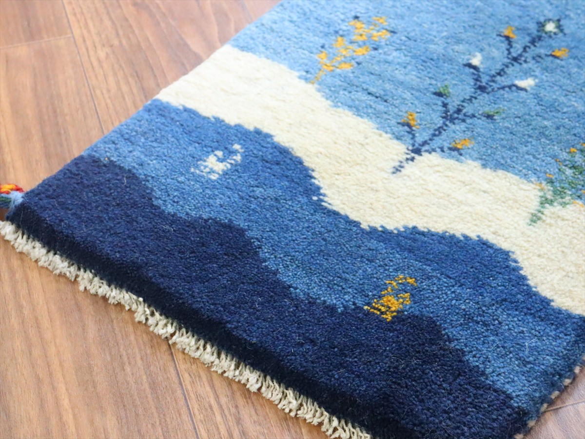 ギャッベ ミニギャベ イラン手織り 54×41cm ブルー 生命の樹と動物