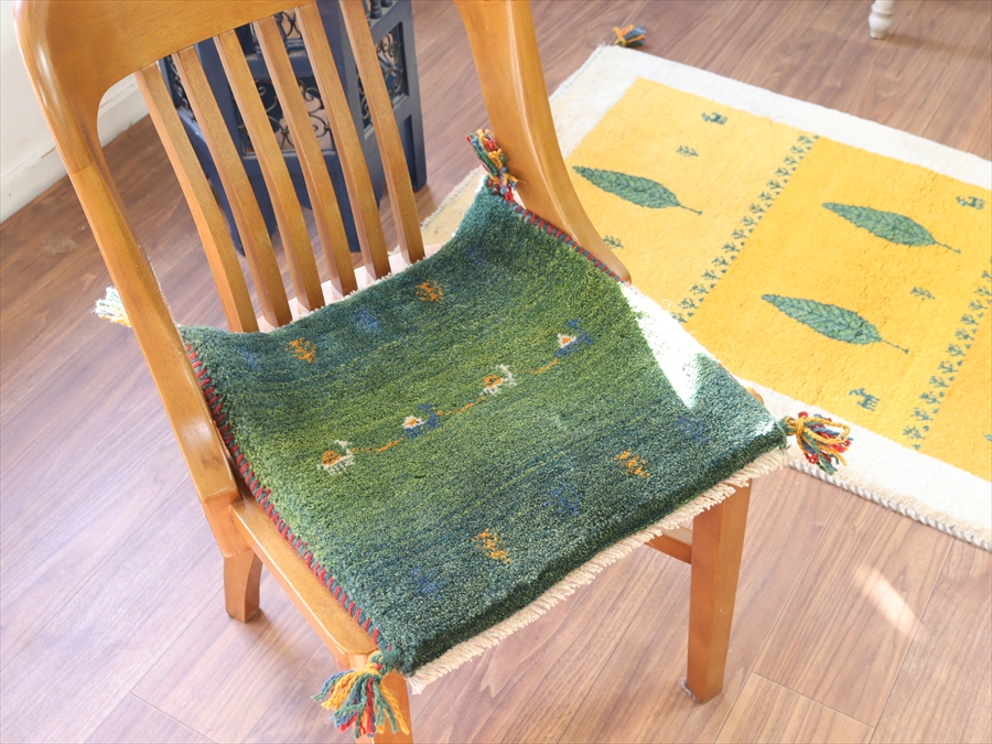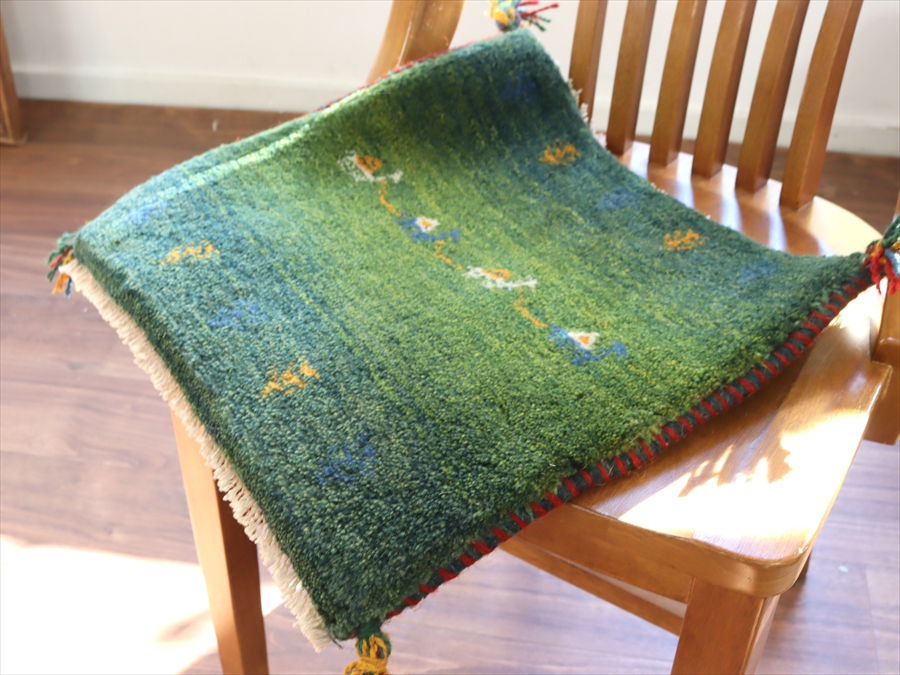 Key:イラン直輸入, GABBEH, ギャッベ, ギャベ, グリーン, 緑, 手織り, 手紡ぎ, ウール, 天然素材, ポンポン, 座布団, バザールギャッベ, ハンドメイド, 一点もの, 現品販売,ガラタバザール, 東京中野区