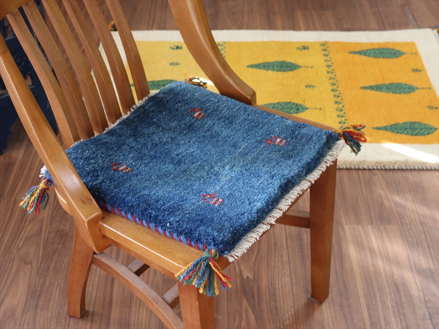 ギャッベ イラン産手織り 座布団サイズ 39x39cm ブルー 無地 シンプル