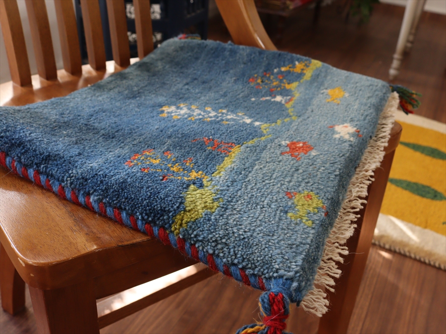 Key:ギャッベ ギャベ Gabbeh, イラン, 遊牧民, 手織り, 手紡ぎ, ペルシャ, 手織り絨毯, 部族絨毯, トライバルラグ, 座布団ギャッベ, 1点もの, 現品販売, ウール100%, ブルー, 青, 紺, インディゴ, 藍染, 天然繊維 ミニギャベ, Gabbeh, Iran Persian rug, Hand Knotted, ガラタバザール