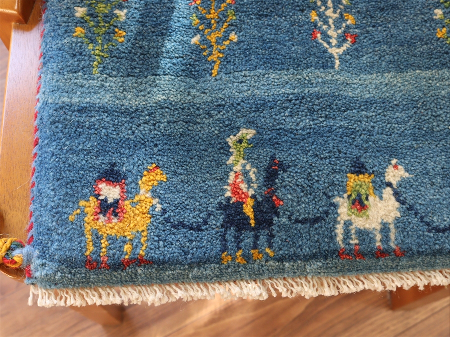 ギャッベ イラン産手織り 座布団サイズ 39x39cm ブルー ラクダの隊商