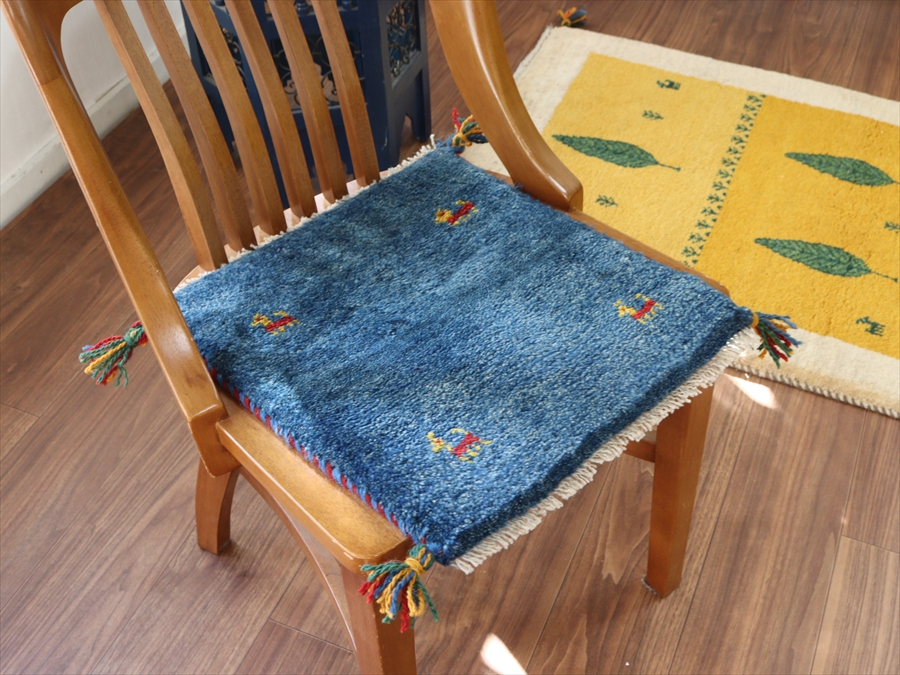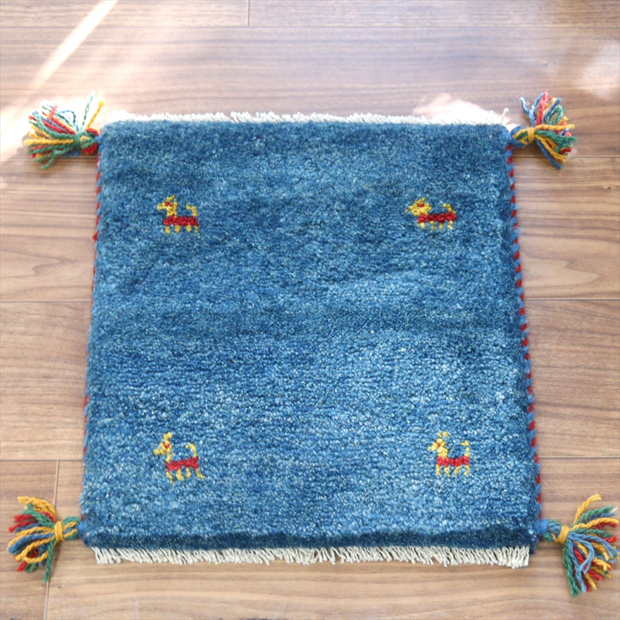 ギャッベ イラン産手織り 座布団サイズ 41x40cm ブルー 無地 シンプル