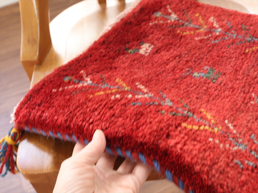 ギャッベ イラン産手織り 座布団サイズ 36x39cm レッド シンプル 動物と生命の木