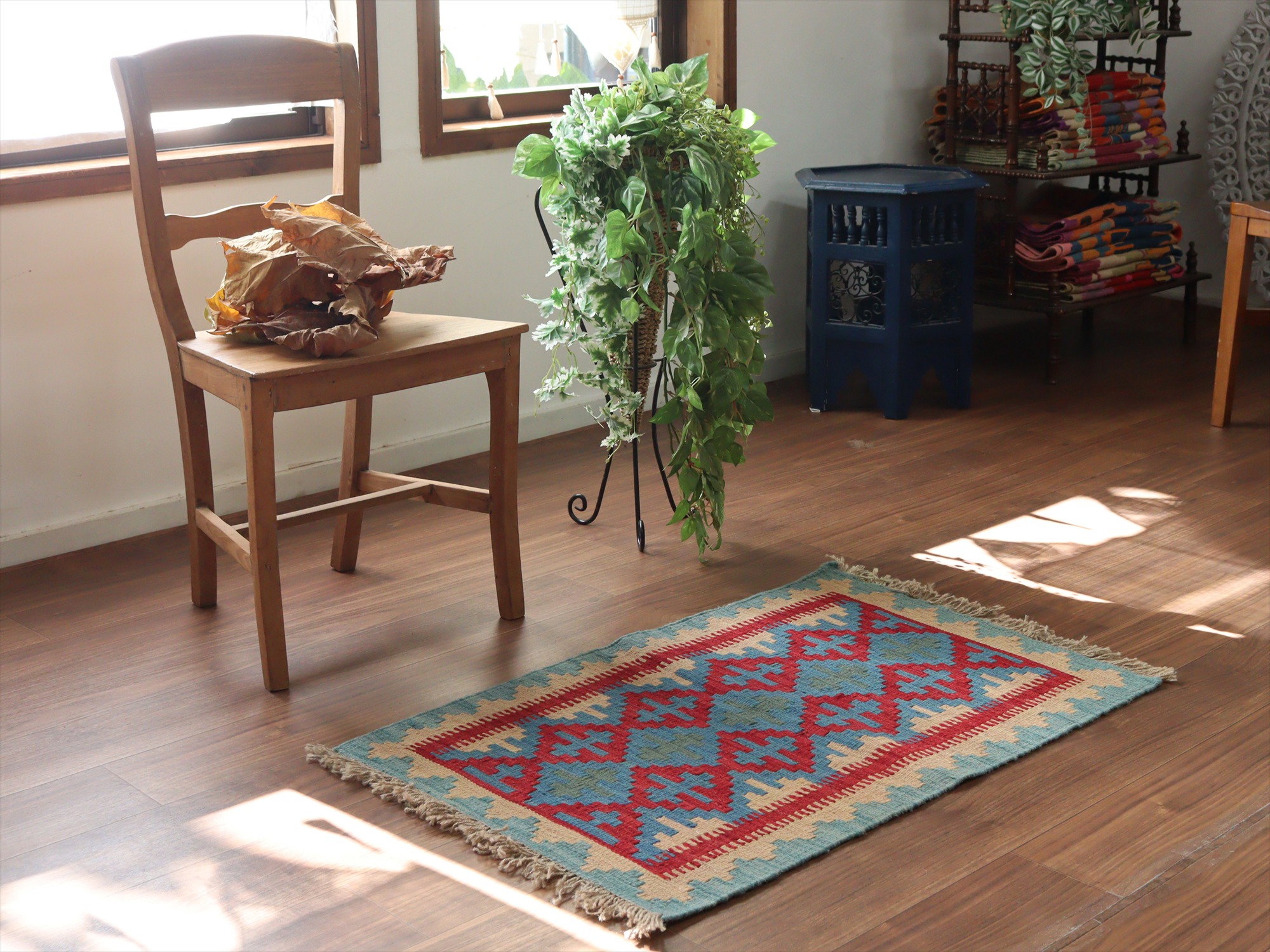 手織りキリム イラン シラーズ93×62cm カラフルな幾何学モチーフ