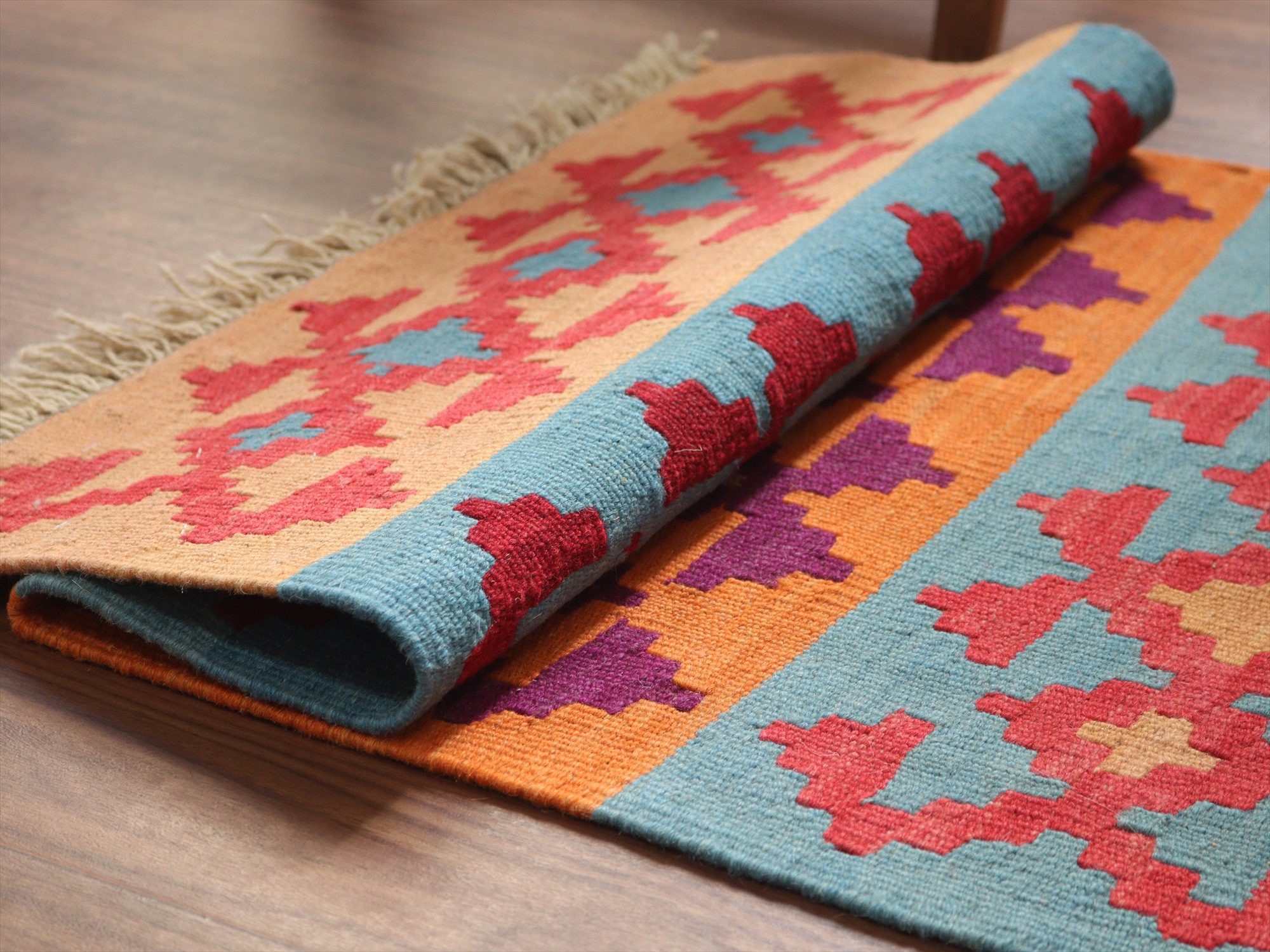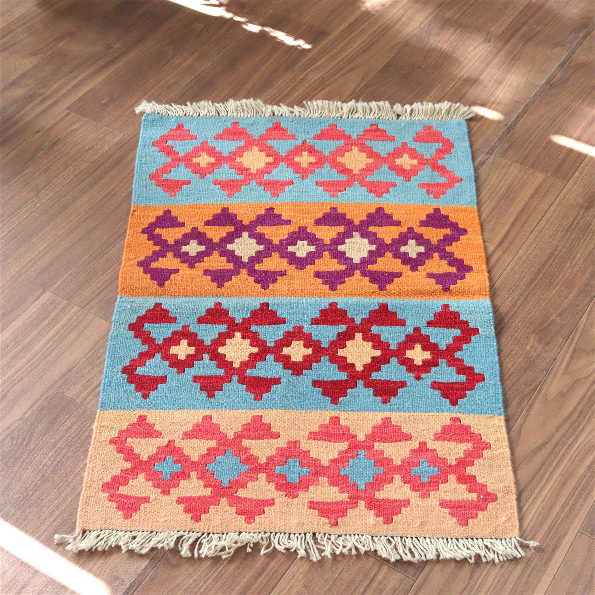 手織りキリム イラン シラーズ92×61cm カラフルな幾何学モチーフ