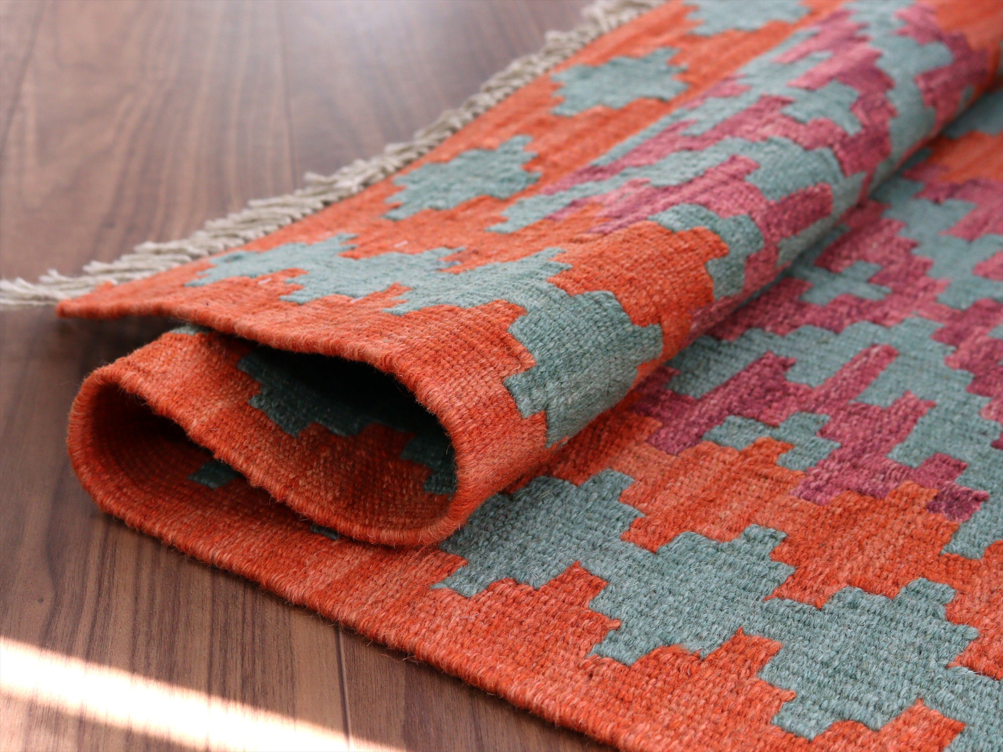 - 手織りキリム イラン シラーズ86×62cm カラフルな幾何学モチーフ