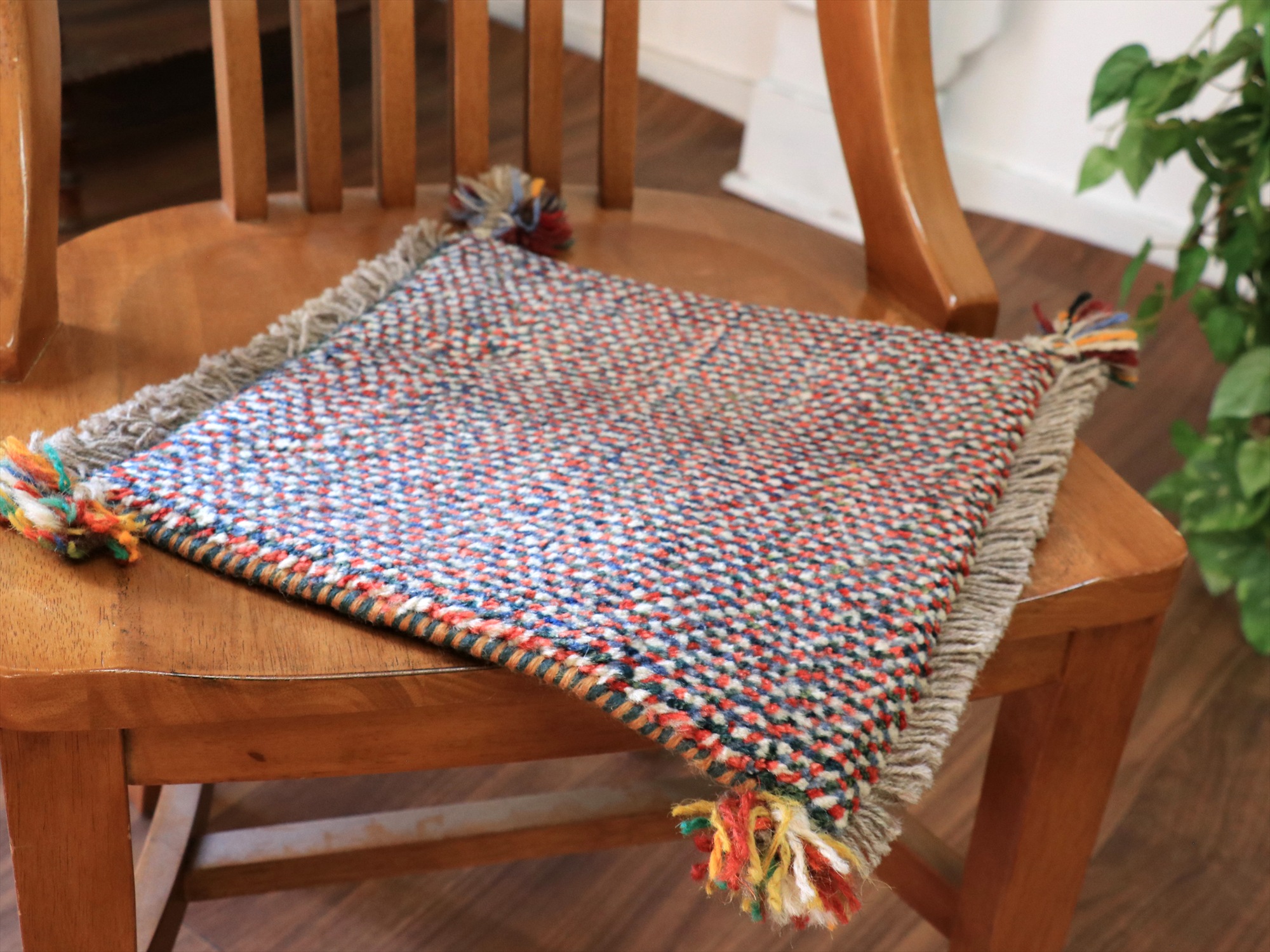 | ふかふかした毛足(パイル)で、手触りが気持ちいい手織りのギャッベ。ミニサイズなので、座布団代わりに敷くのはもちろん、ダイニングチェアに敷いたり、絵画のように壁に貼ってデコレーションとしても楽しめます。手織りならではの一枚一枚違ったテイストをお楽しみください。 |
