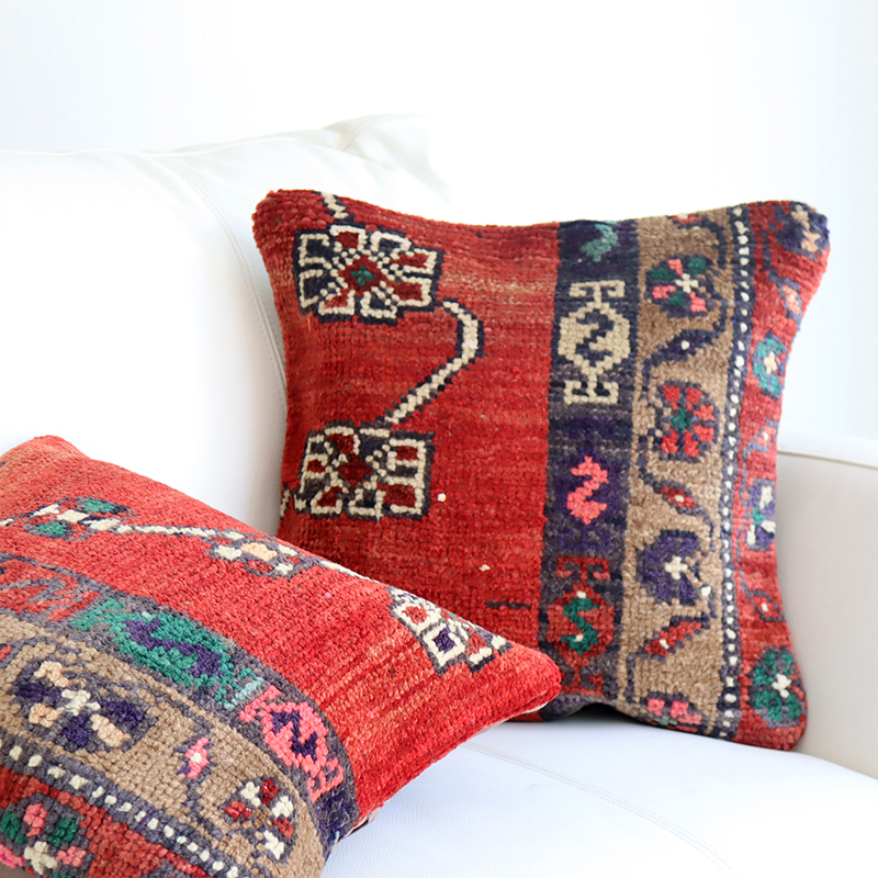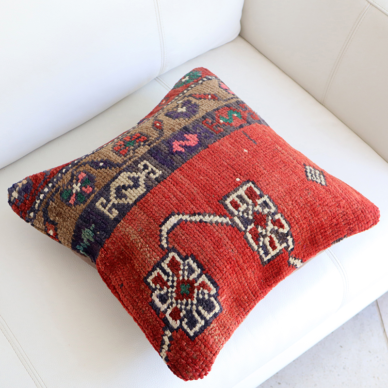ヴィンテージラグ クッションカバー パイル織りラグ クッションカバー40cmサイズ <br>トルコ絨毯