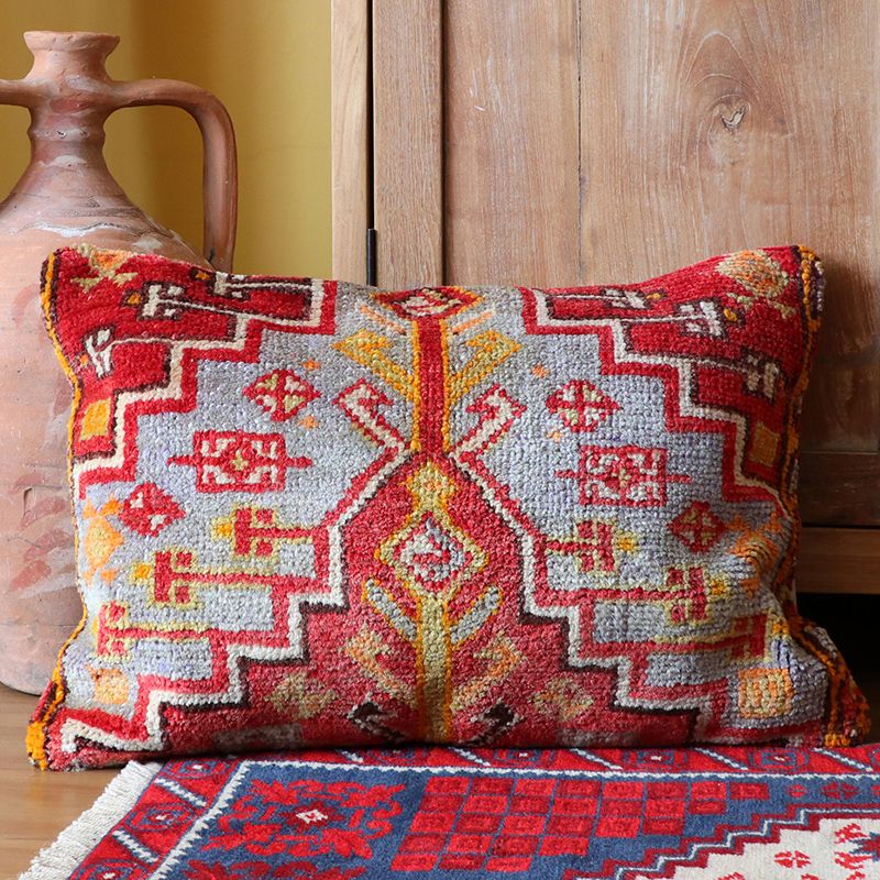 ヴィンテージラグ クッションカバー パイル織りラグ クッションカバー 61×40cm シブリヒサル 長方形 ビッグピロー Lumbar Pillow