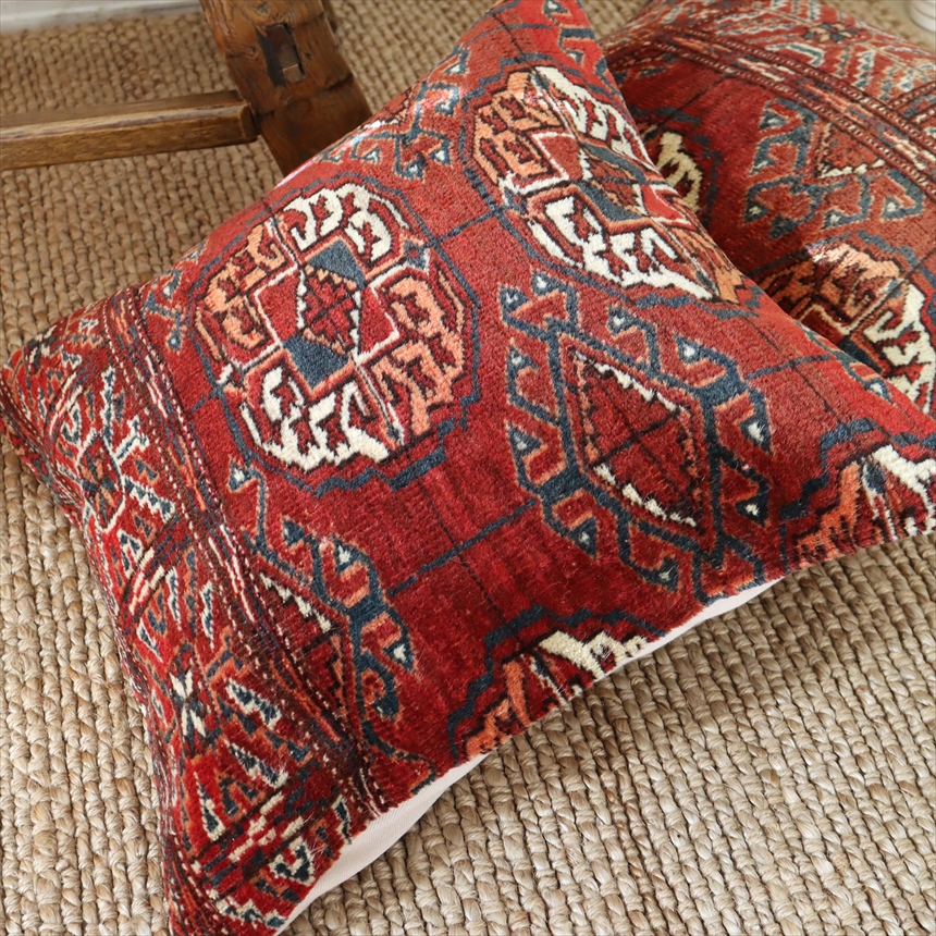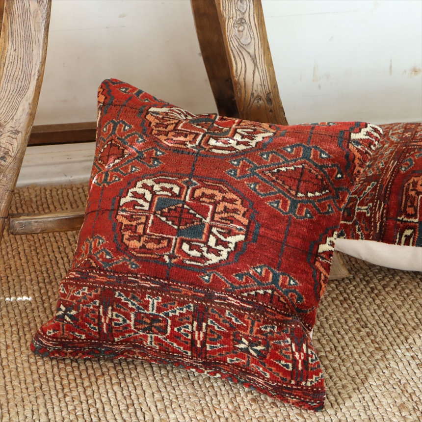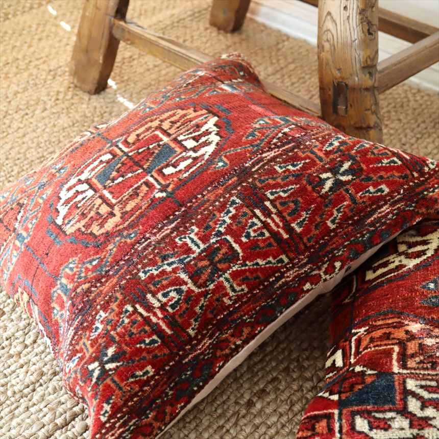 - クッションカバー ヴィンテージ パイル織り 絨毯 40cmサイズ トルクメン ヤムート レッド