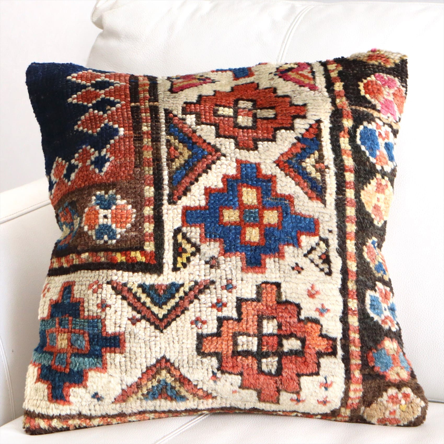 - クッションカバー ヴィンテージ パイル織り 絨毯 40cmサイズ コーカサス ネイビー&ブラウン