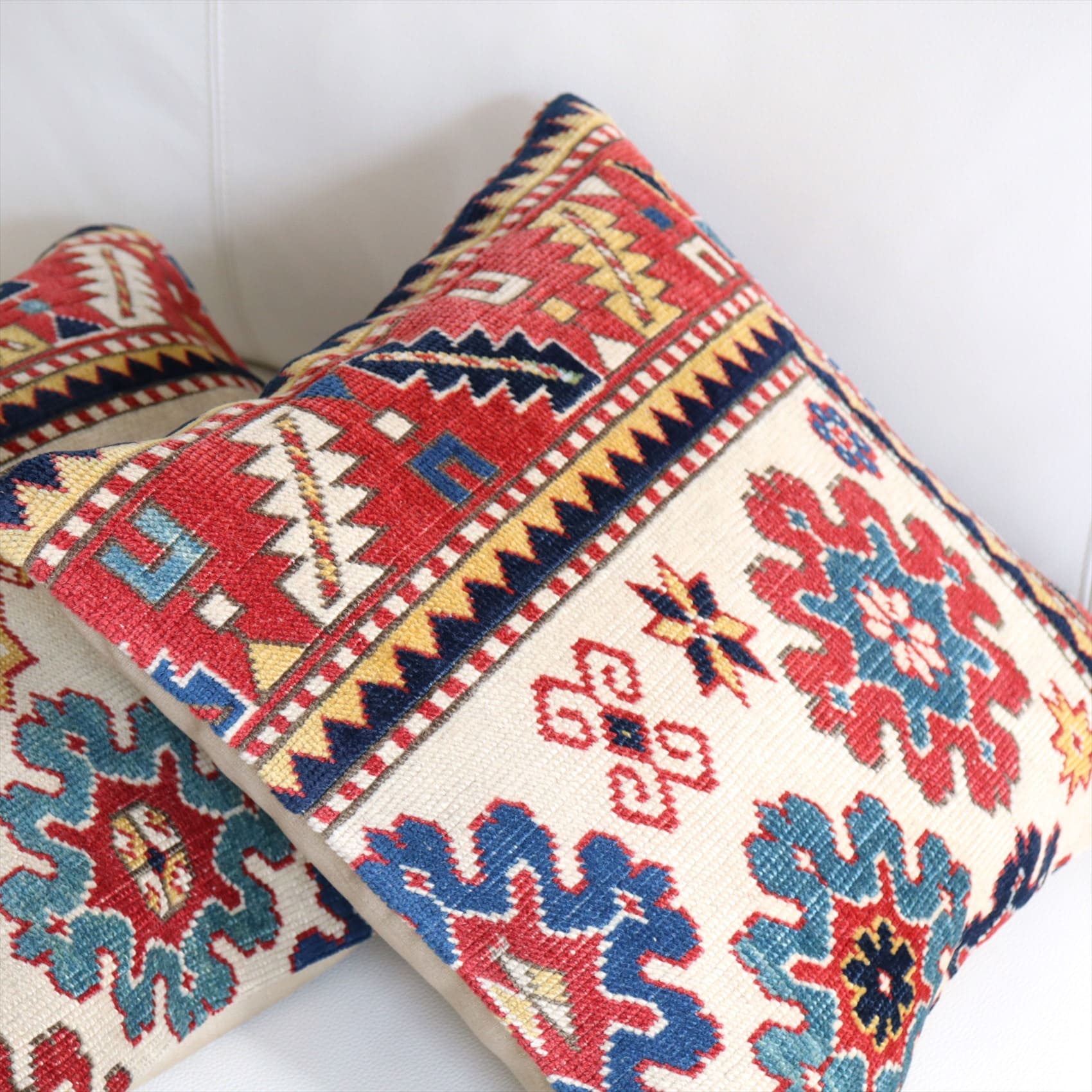 - クッションカバー ヴィンテージ パイル織り 絨毯 40cmサイズ コンヤ フラワーモチーフ
