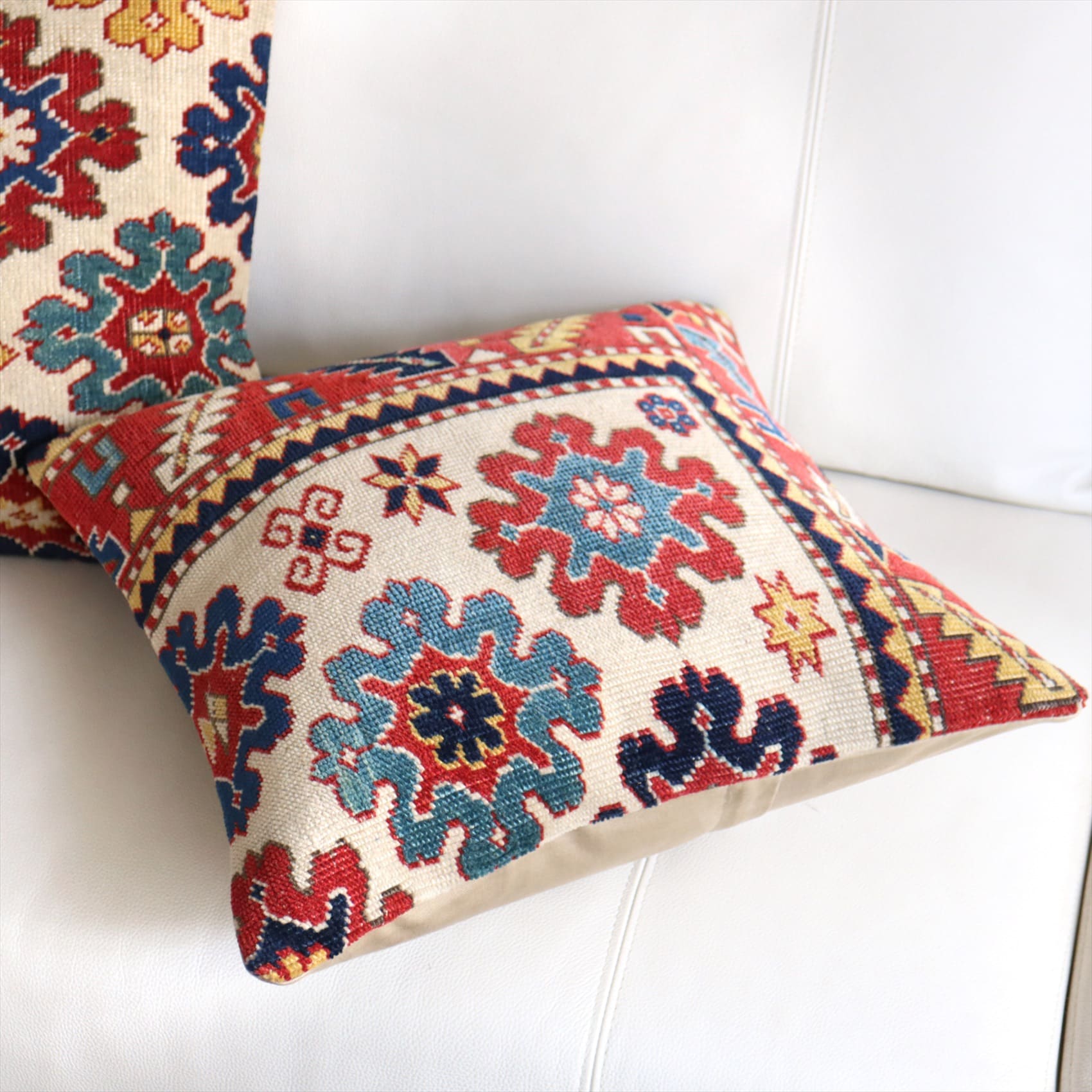 クッションカバー ヴィンテージ パイル織り 絨毯 40cmサイズ コンヤ フラワーモチーフ
