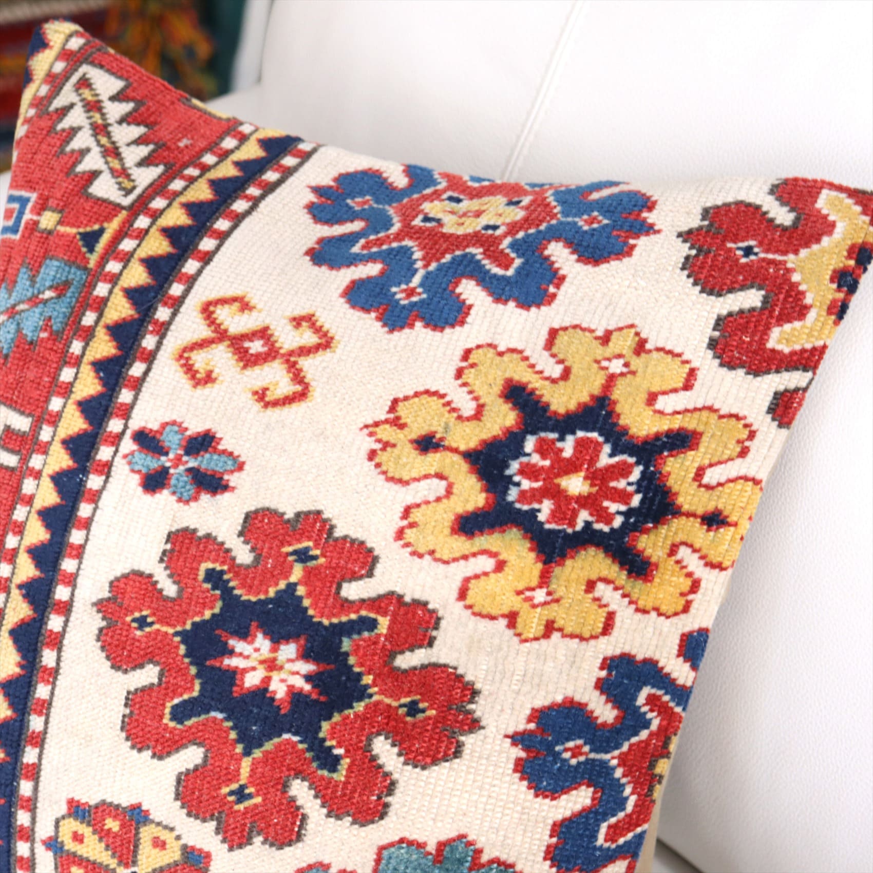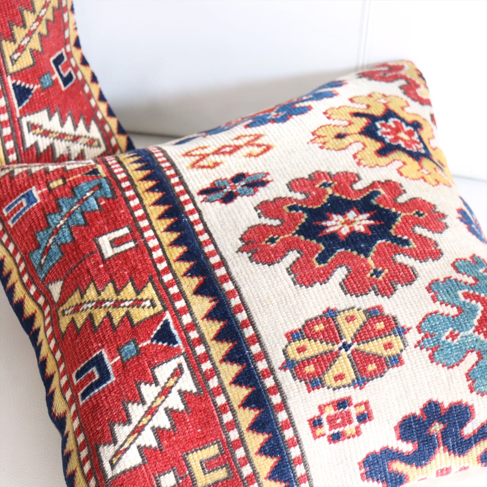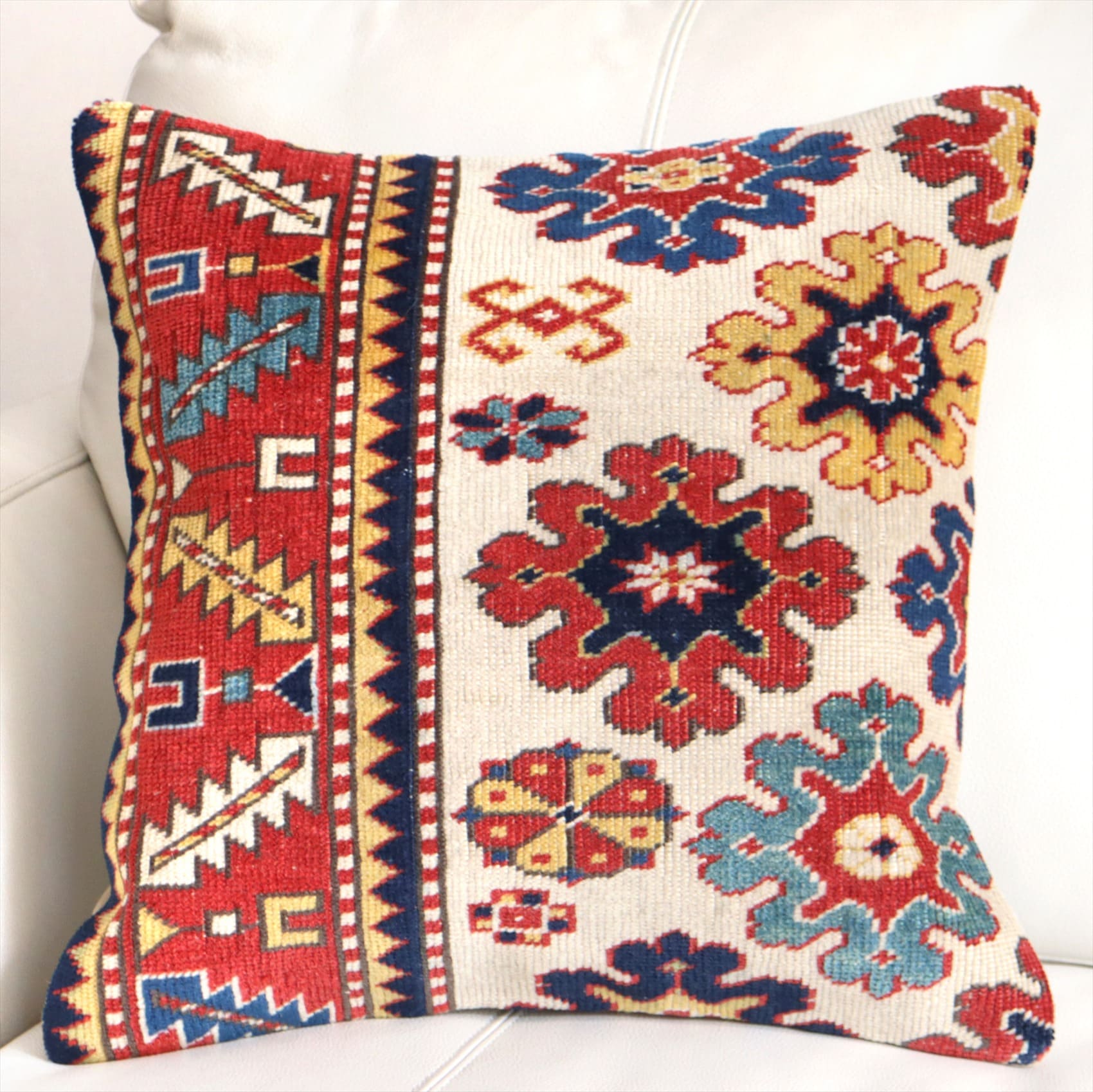 - クッションカバー ヴィンテージ パイル織り 絨毯 40cmサイズ コンヤ フラワーモチーフ