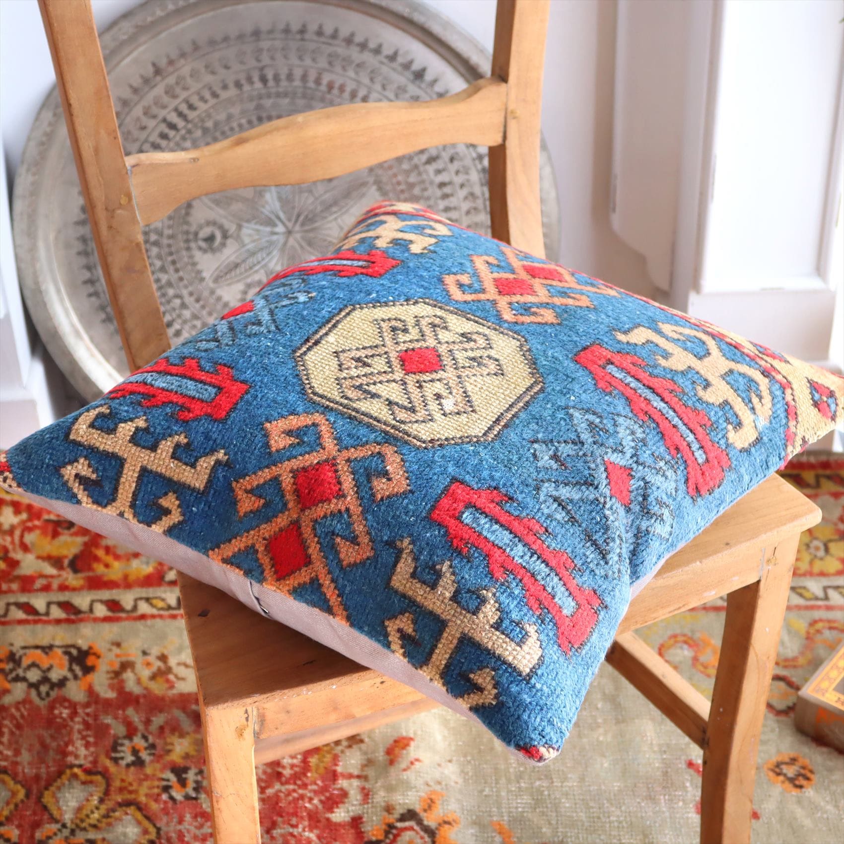 - クッションカバー ヴィンテージ パイル織り 絨毯 45cmサイズ コンヤ ブルー