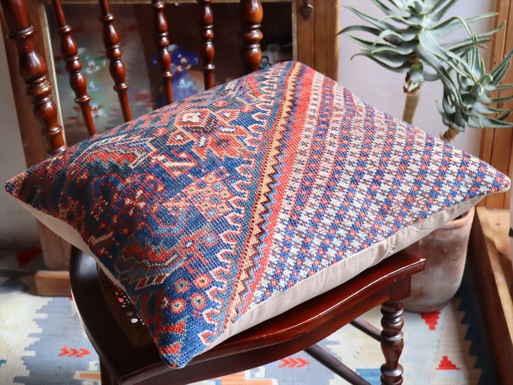 クッションカバー ヴィンテージ パイル織り 絨毯 ビッグピロー 横長 長方形 54×46cm カシュカイ 幾何学モチーフ