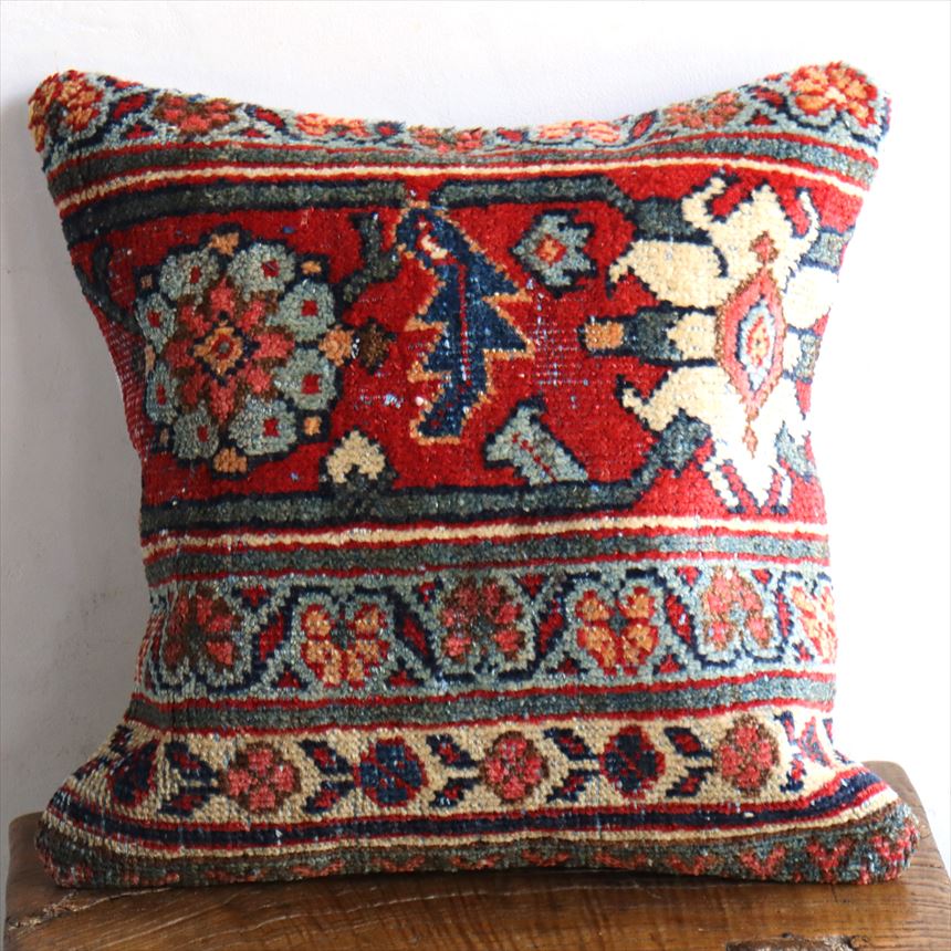 ヴィンテージラグクッションカバー 39×40cmトライバルラグ ハマダン
