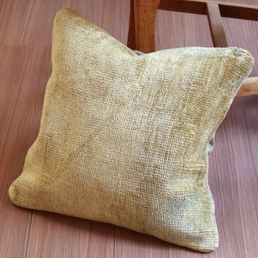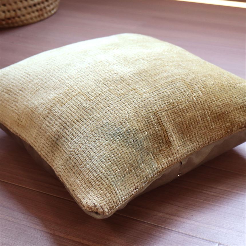 | オールドカーペットをブリーチして作られたクッションカバー。モノトーン系の渋い色合いと、素朴で落ち着いた雰囲気が魅力的。オリジナルラグのデザインはかなりうっすらでほとんど残っていません。 |