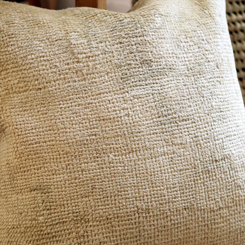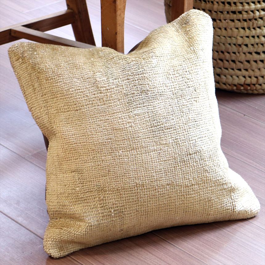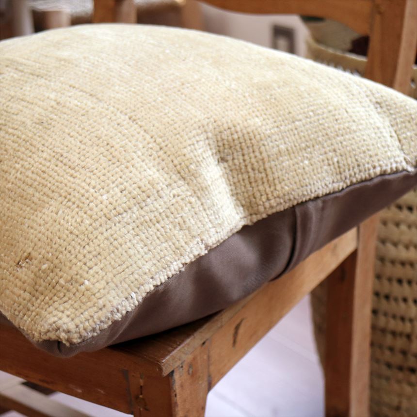 | オールドカーペットをブリーチして作られたクッションカバー。モノトーン系の渋い色合いと、素朴で落ち着いた雰囲気が魅力的。オリジナルラグのデザインはかなりうっすらでほとんど残っていません。 |