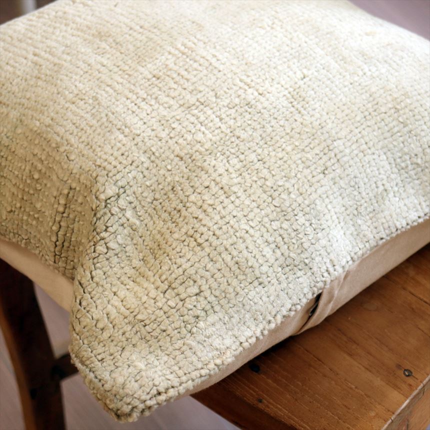 オールドカーペットをブリーチして作られたクッションカバー。モノトーン系の渋い色合いと、素朴で落ち着いた雰囲気が魅力的。