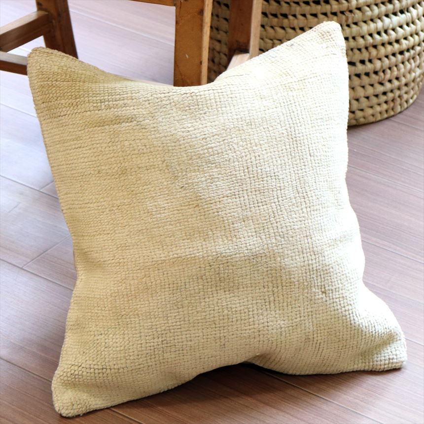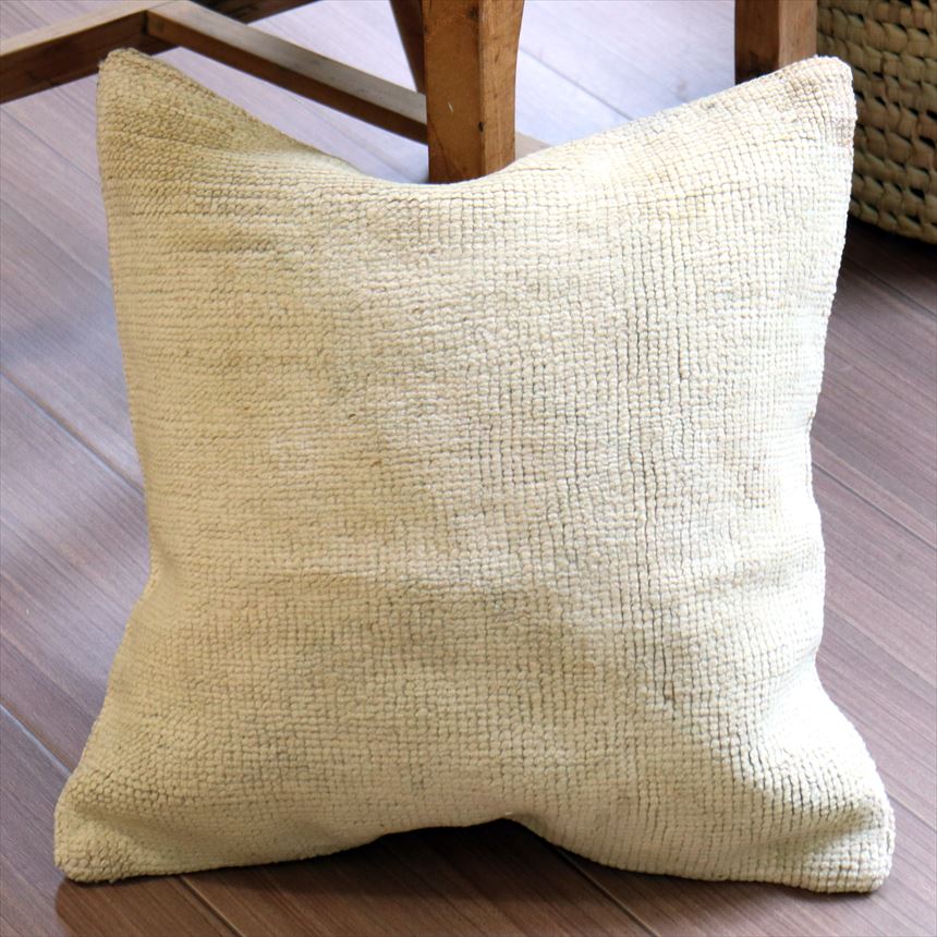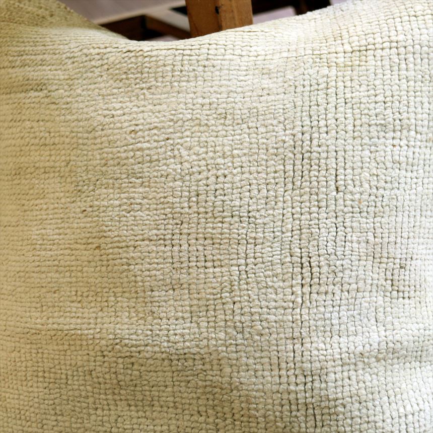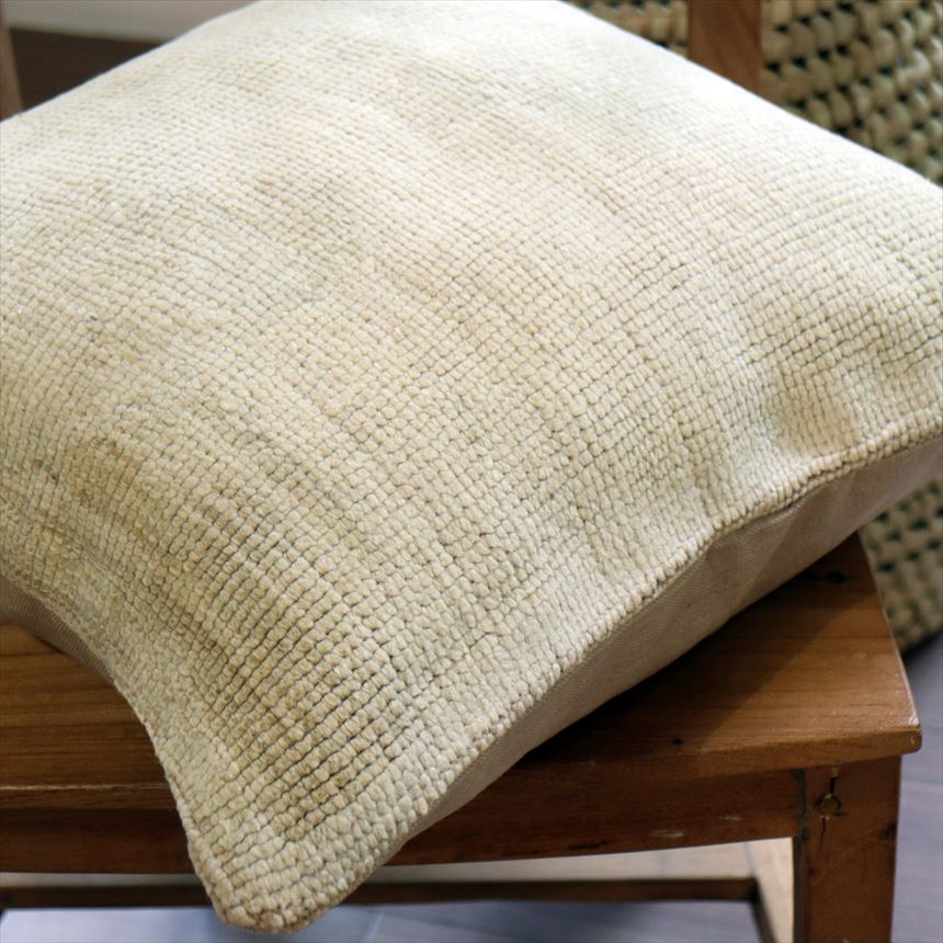 | オールドカーペットをブリーチして作られたクッションカバー。モノトーン系の渋い色合いと、素朴で落ち着いた雰囲気が魅力的。オリジナルラグのデザインはかなりうっすらでほとんど残っていません。 |