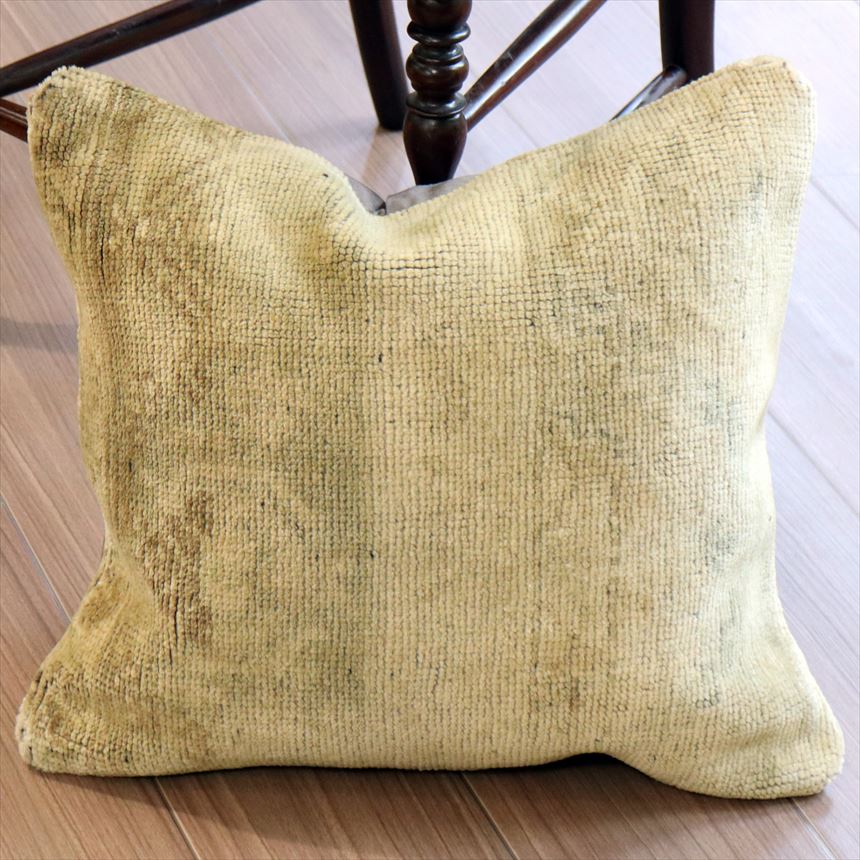 - ヴィンテージラグクッションカバー 44×40cmトルコ絨毯・ブリーチしたアンティーク加工