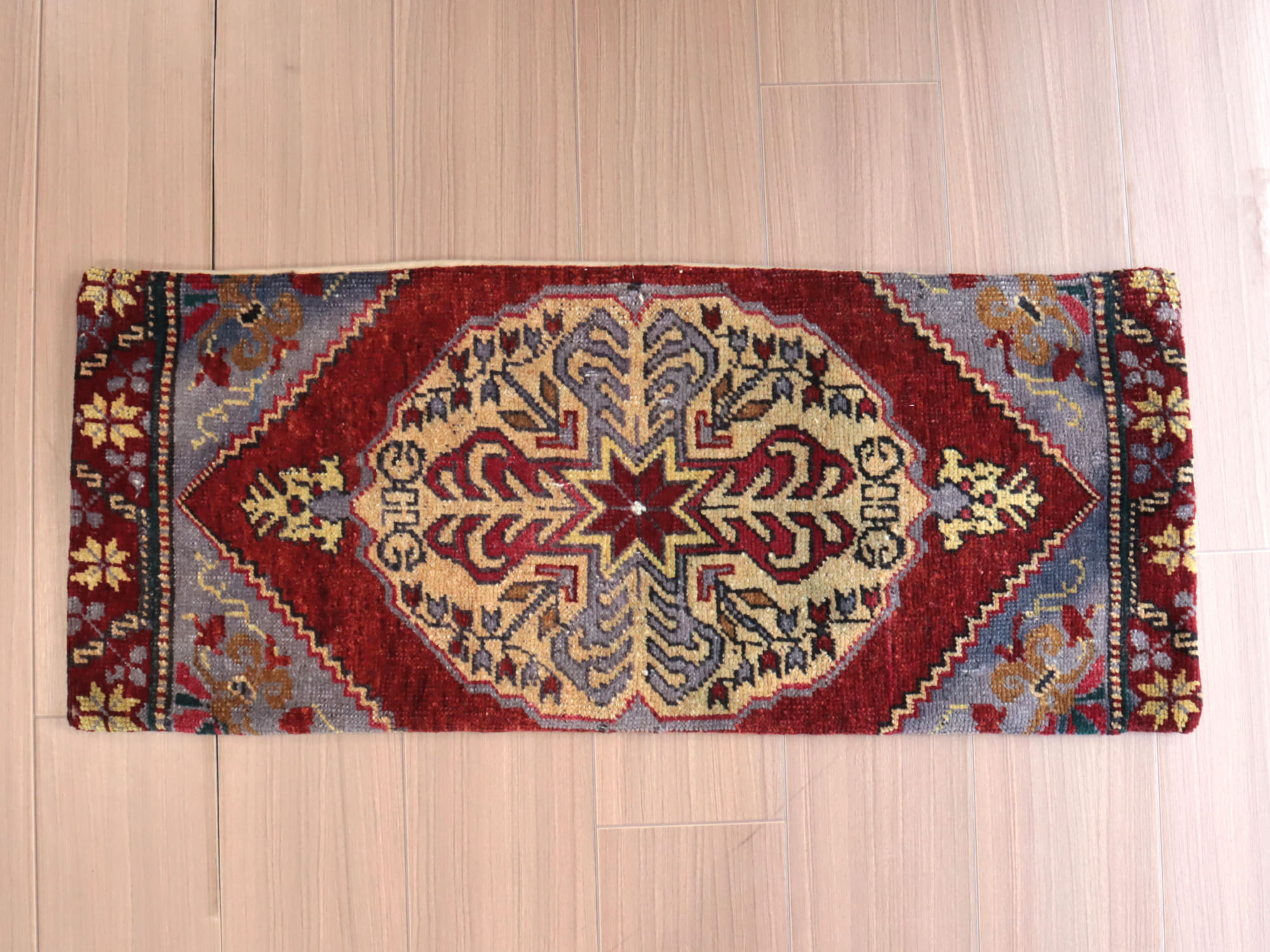 ヴィンテージラグ クッションカバー37×91cm コンヤ・タシュプナル地方 六角形のメダリオン