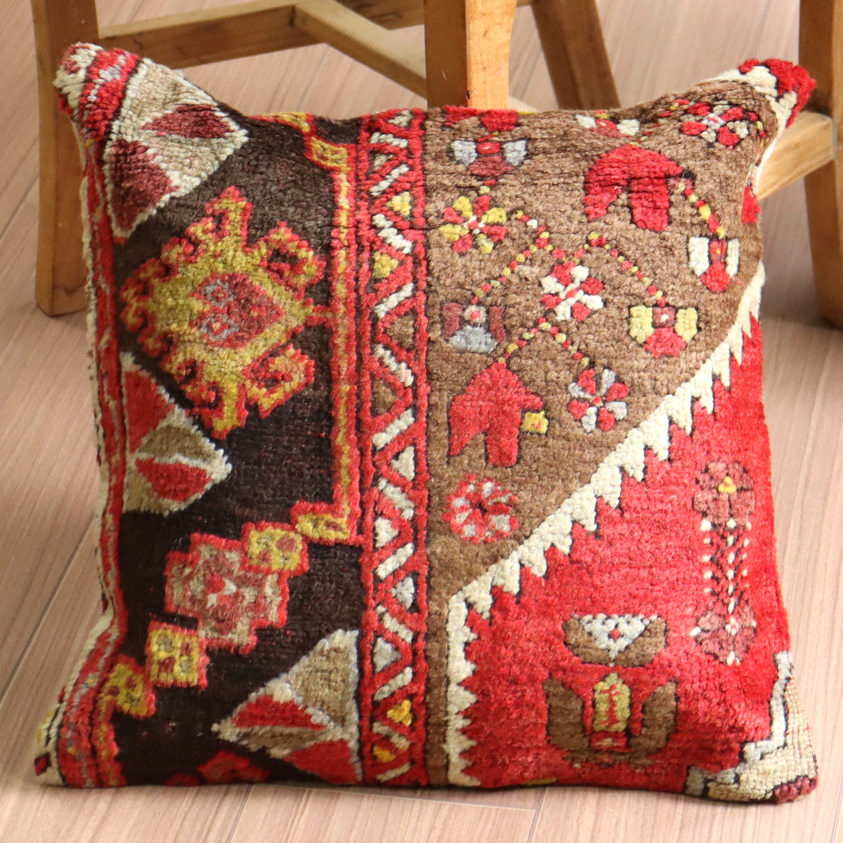 クッションカバー ヴィンテージ パイル織り 41×40cm トルコ絨毯 シワス地方