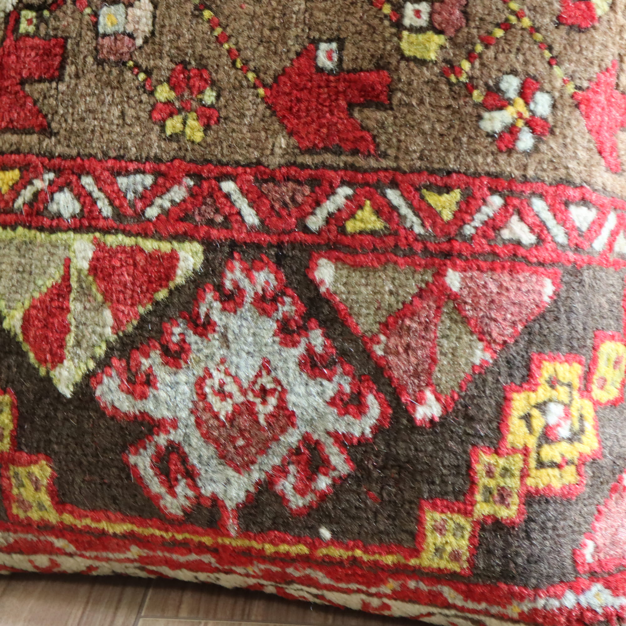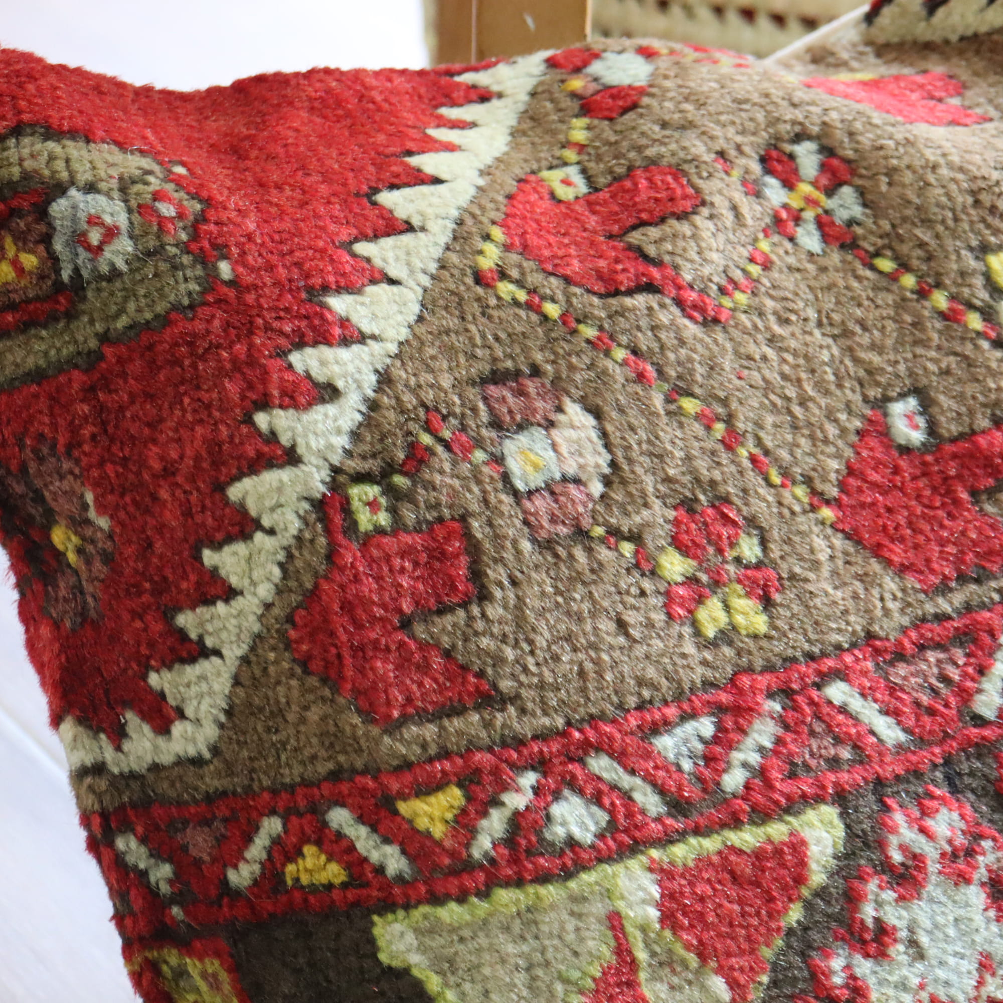 | アナトリア中央部シワス地方で織られた手織りラグを使ったクッションカバーです。織られてから50年前後経過していますが、ほとんど使われていなかった様子で、織られた当時の鮮やかな色を残しています。パイル(毛足)は長めに残っていて、表面はなめらかな肌ざわりです。 |