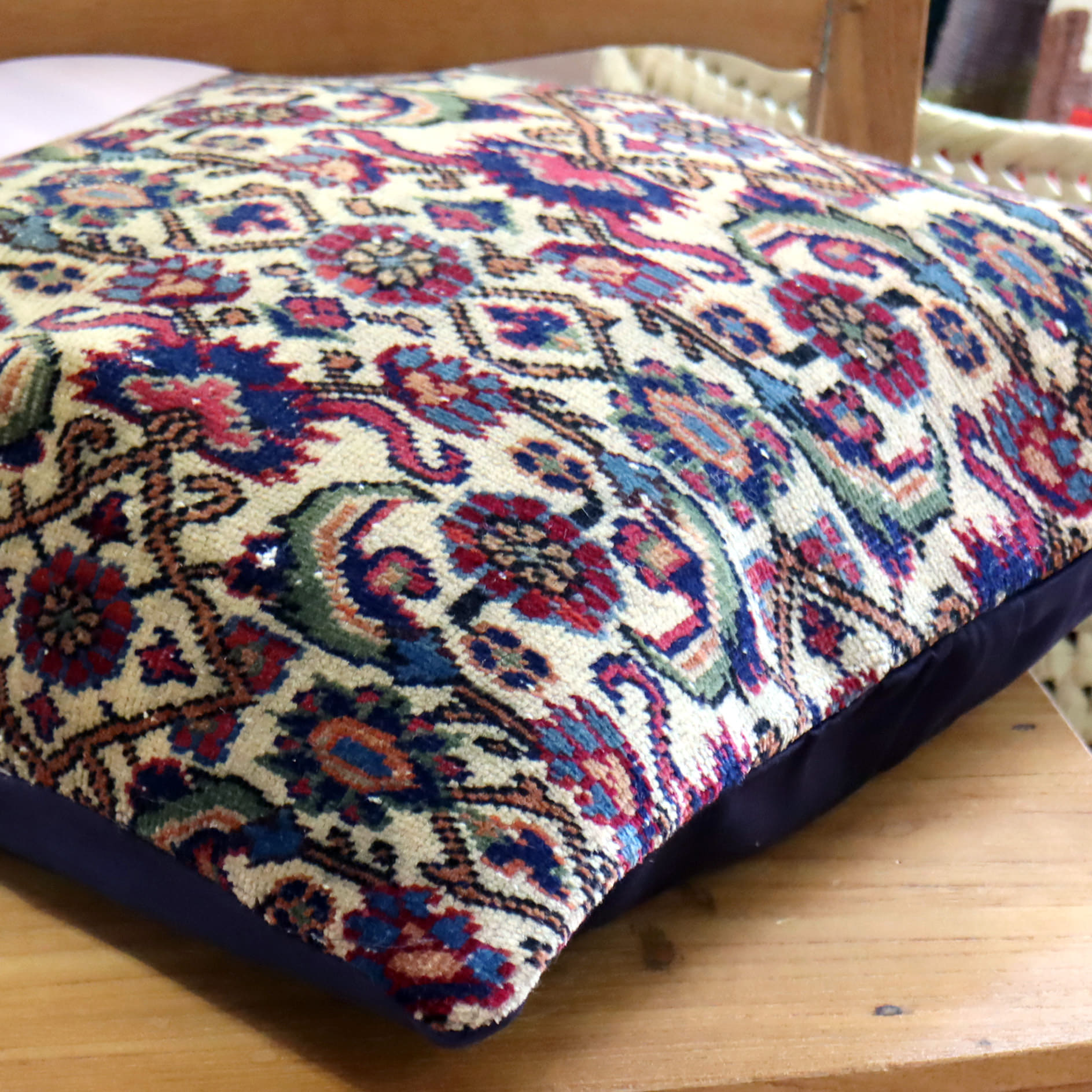 - クッションカバー ヴィンテージ パイル織り 46×46cm トルコ絨毯 フラワーデザイン