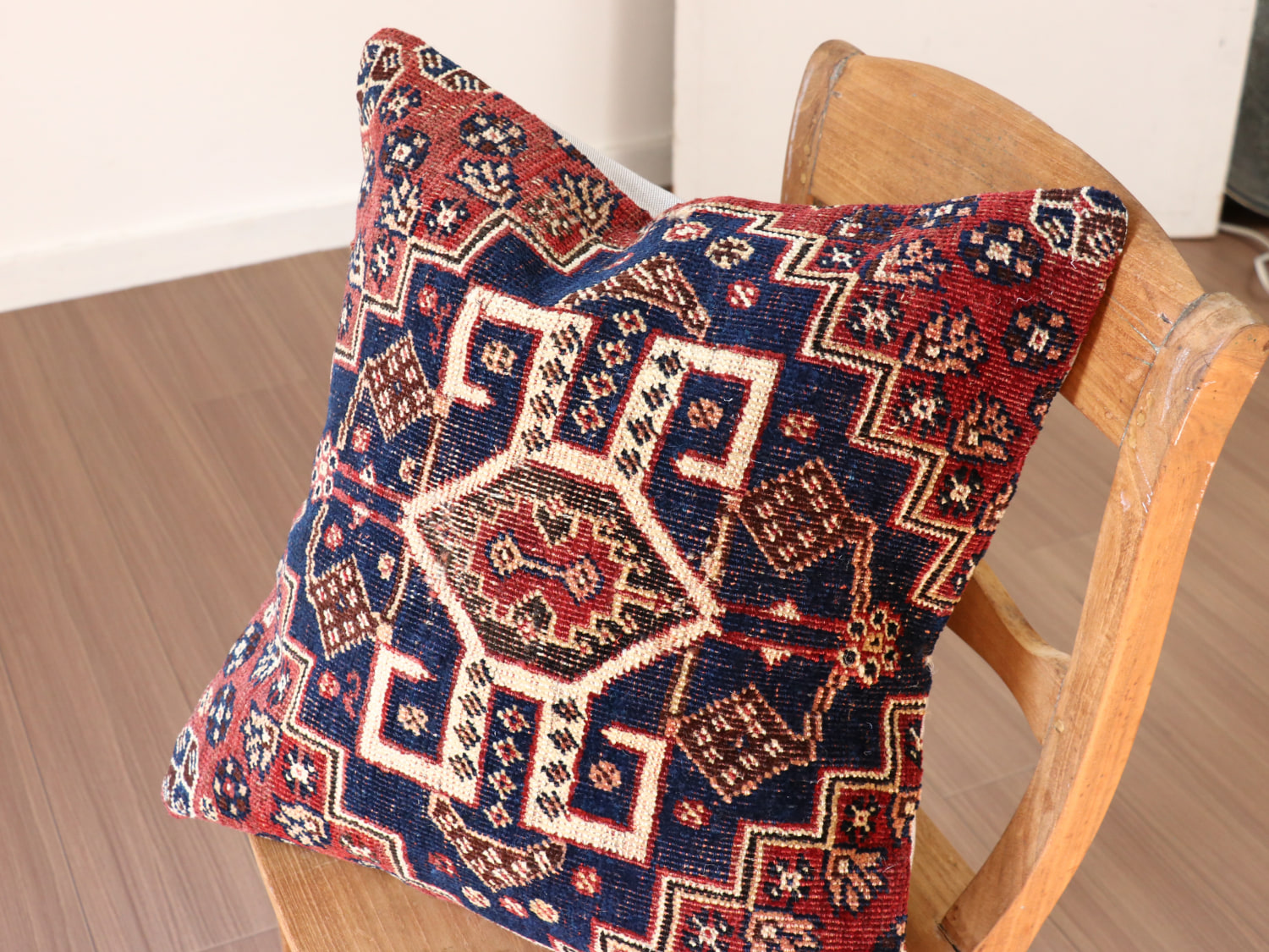 アンティークラグ クッションカバー50×50cm カシュカイ族 手織り絨毯
