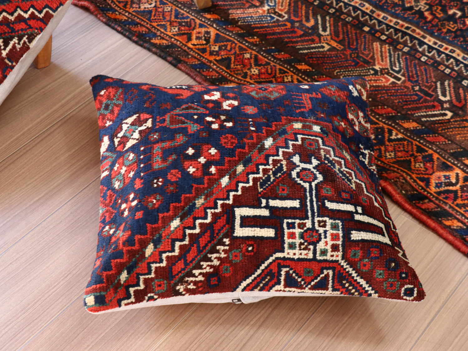 アンティークラグ クッションカバー50×50cm カシュカイ族 手織り絨毯