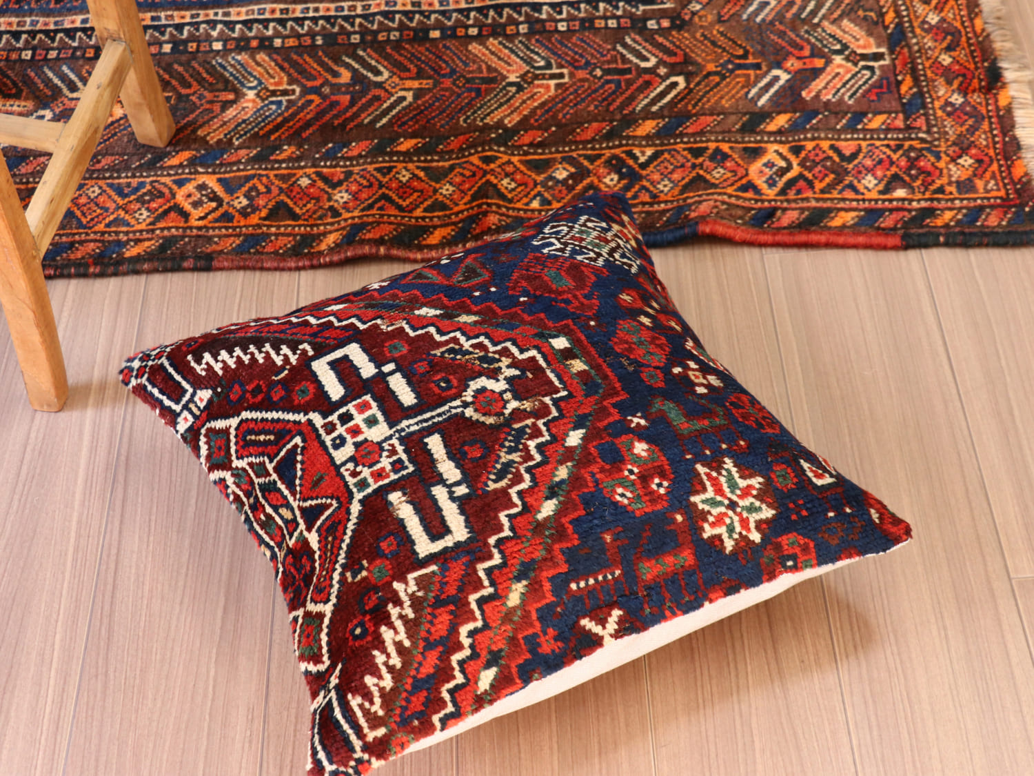 - アンティークラグ クッションカバー49×50cm カシュカイ族 手織り絨毯