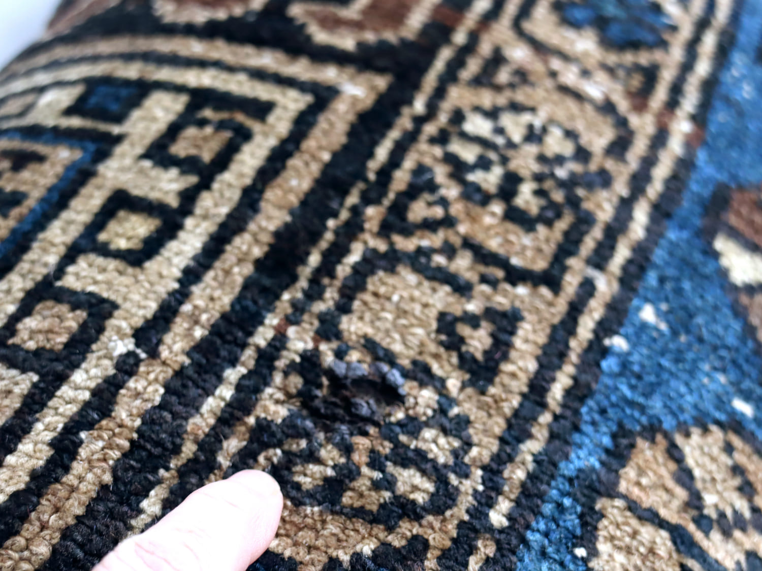 | ※中央にパイル(毛足)がなくなって、穴のように見える部分があります。(下地の経糸は残っています) |