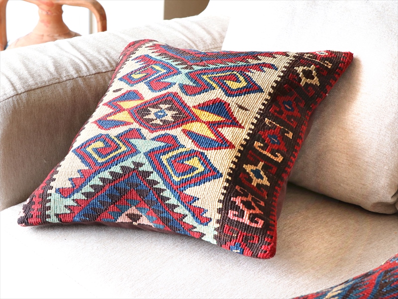 キリムクッション 40cm角サイズ /オールドキリムクッションカバー トルコ東部ワン地方