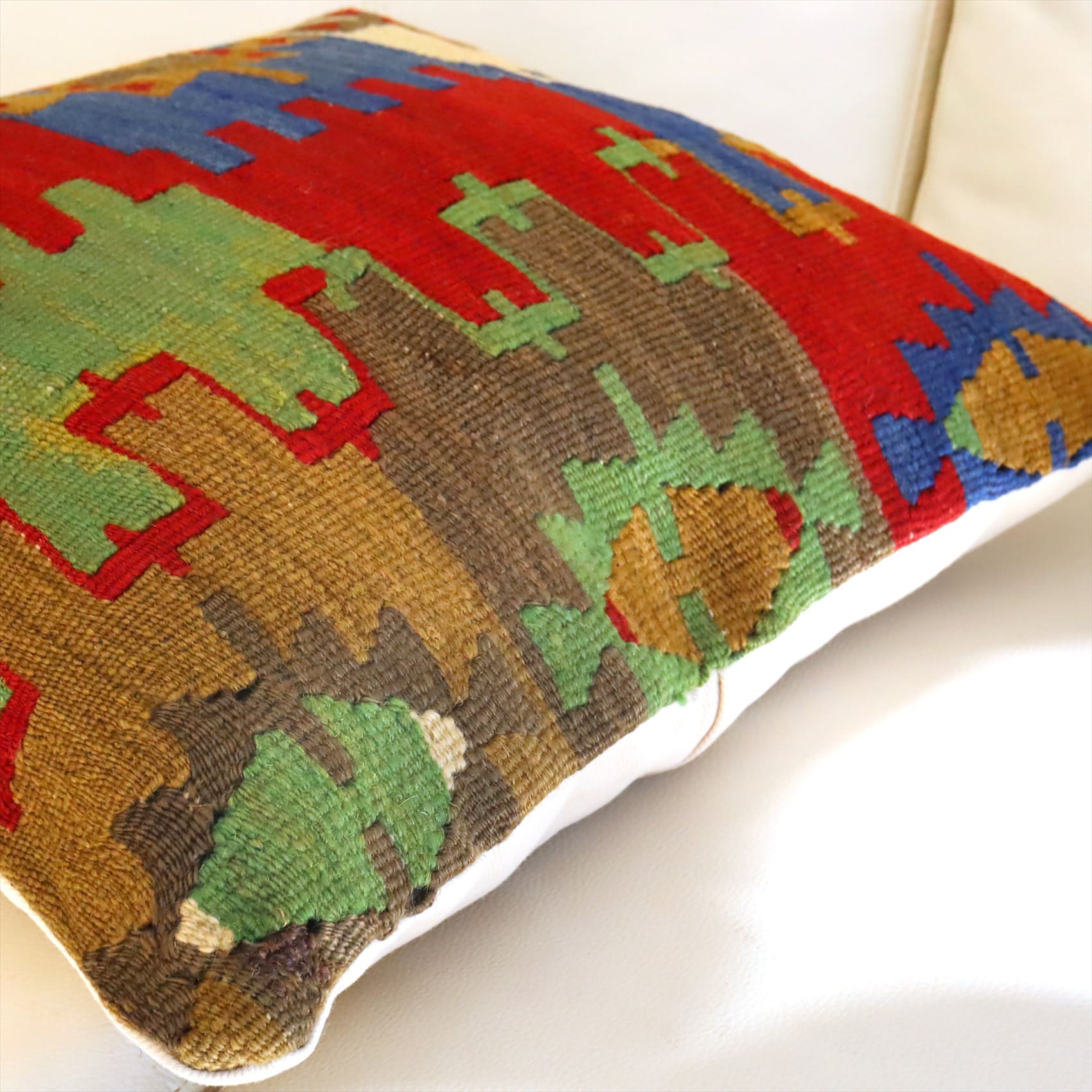 オールドキリム クッションカバー 40cmサイズ コンヤ レッド&ブルー&グリーン